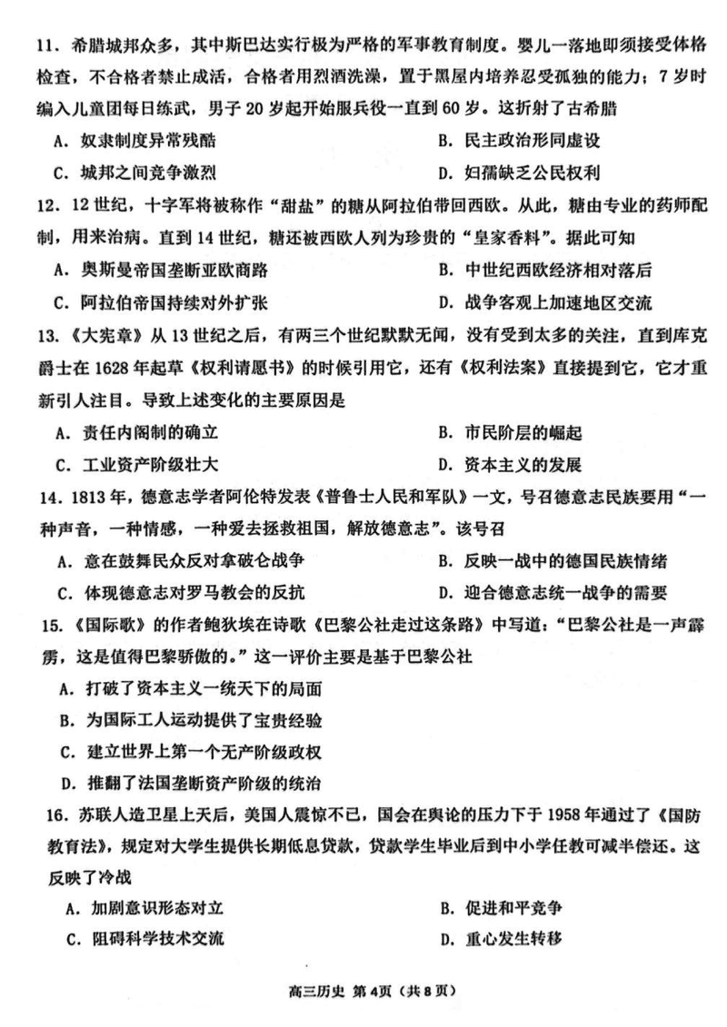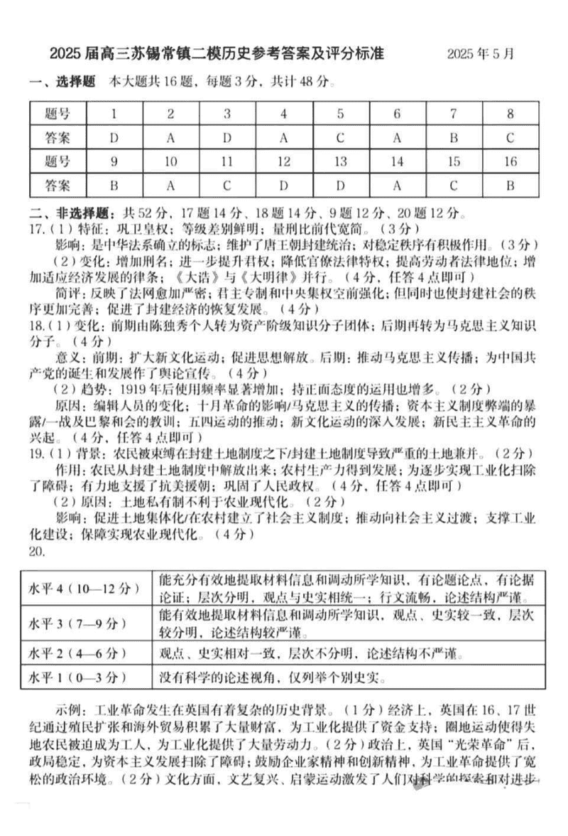 2024-2025学年苏锡常镇四市高三5月教学情况调研(二)历史考试已于近日开考,为方便考生考后及时查看考试情况,查漏补缺、弥补不足,本文整理了试题答案解析相关信息!
