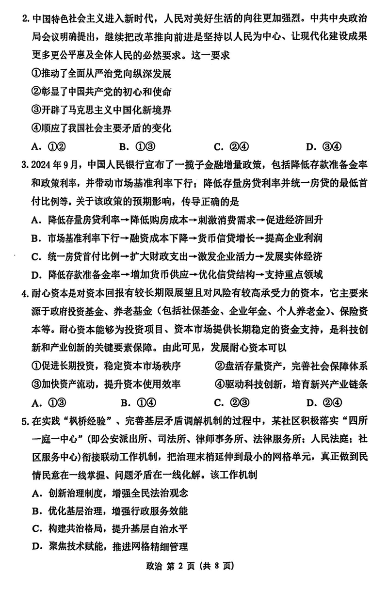 2024-2025学年苏锡常镇四市高三5月教学情况调研(二)政治试题及答案