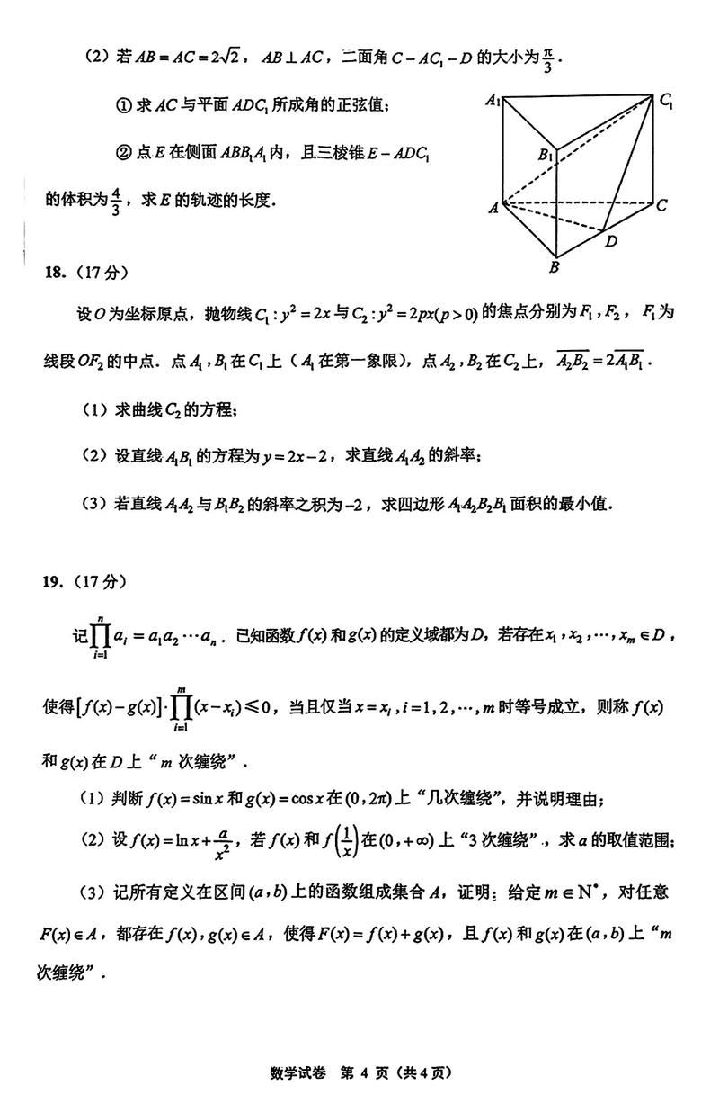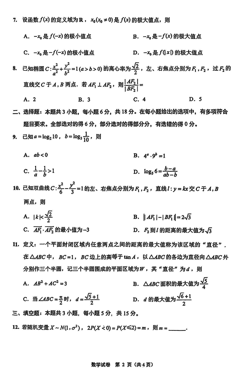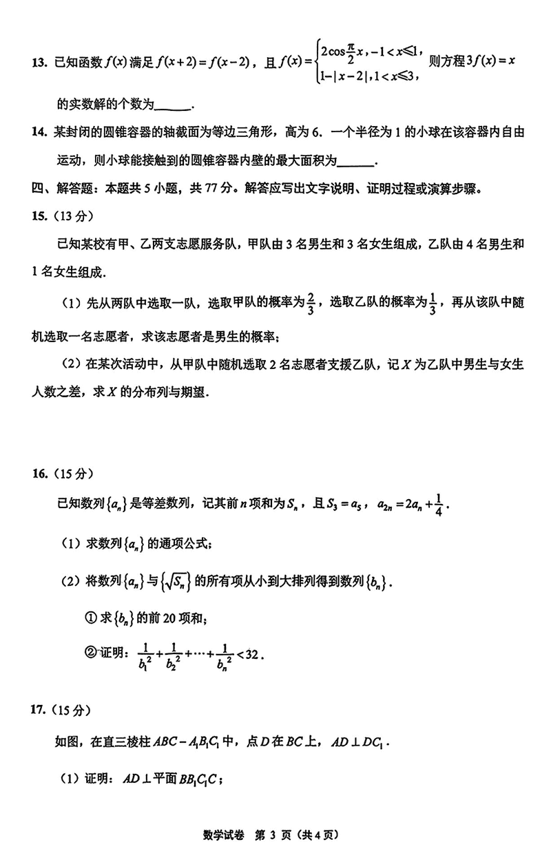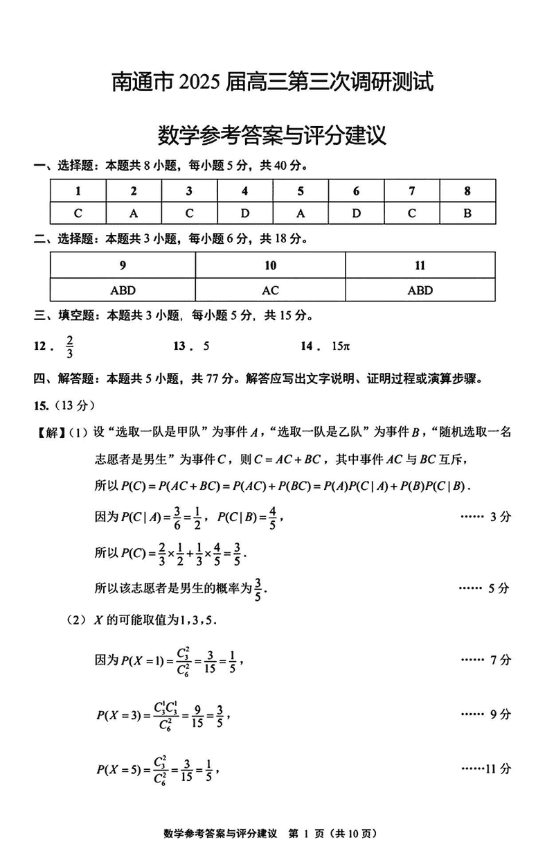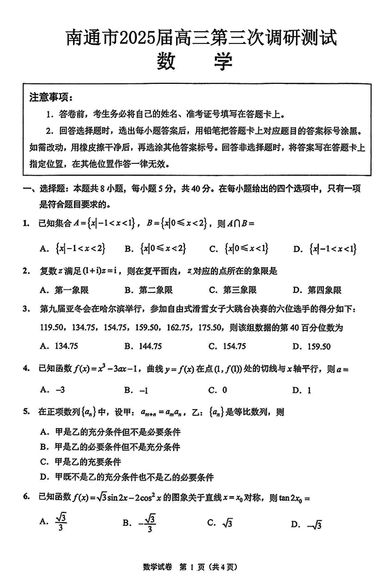 苏北八市2025届高三三模数学试题及答案