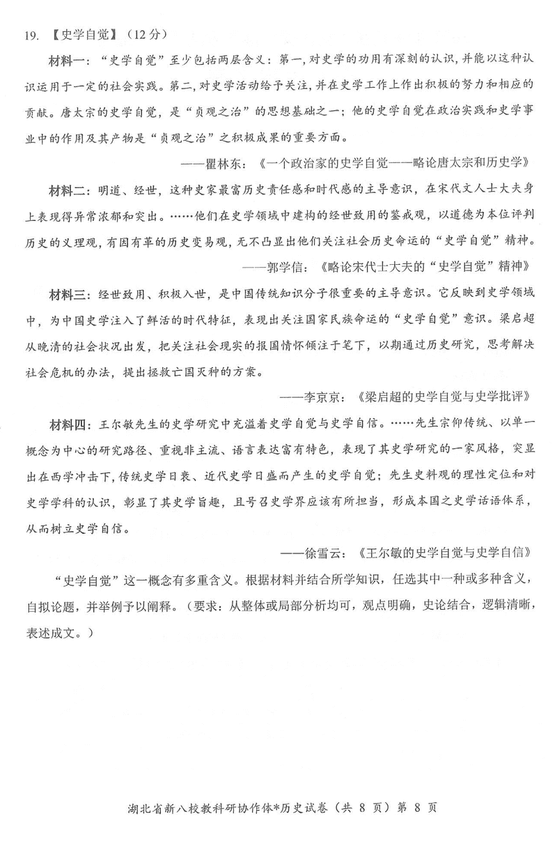 2025年湖北省新八校协作体高三5月联考历史试题及答案