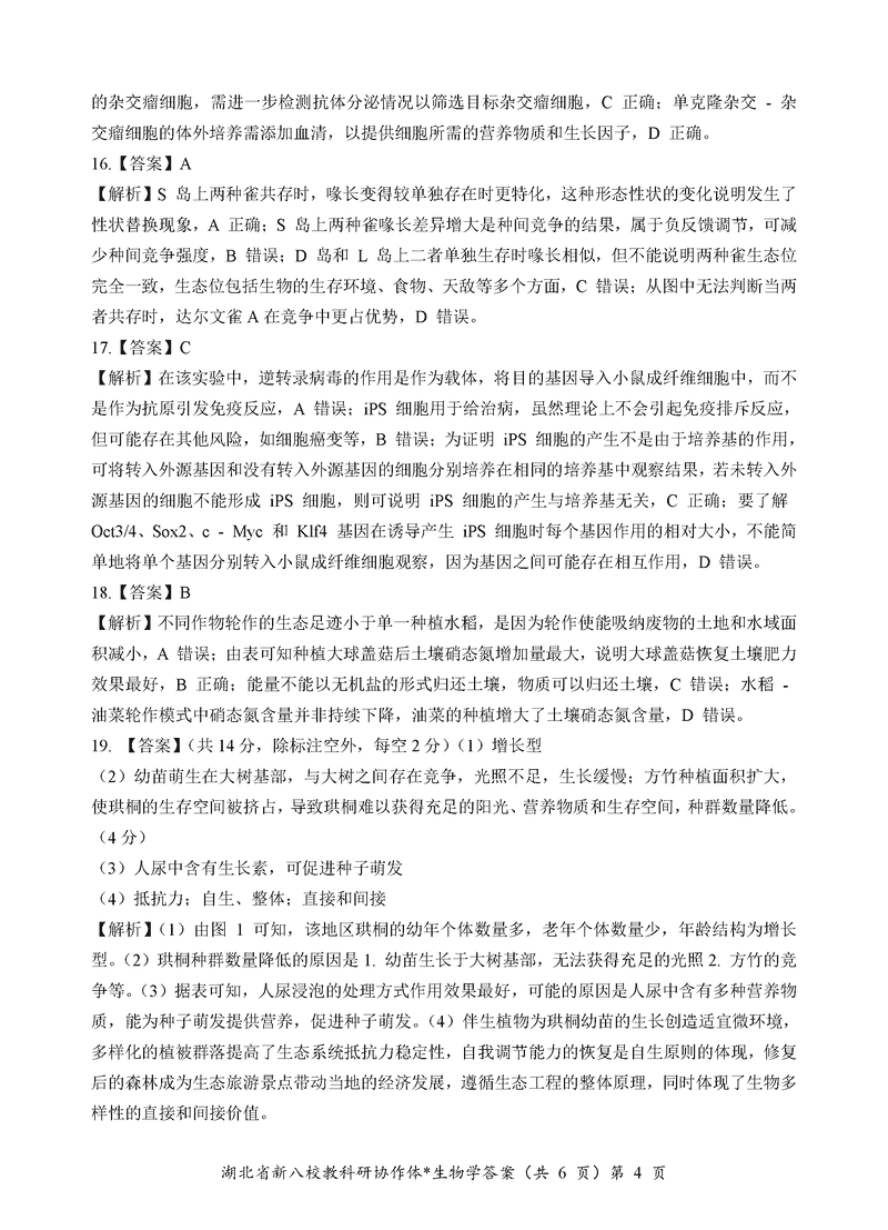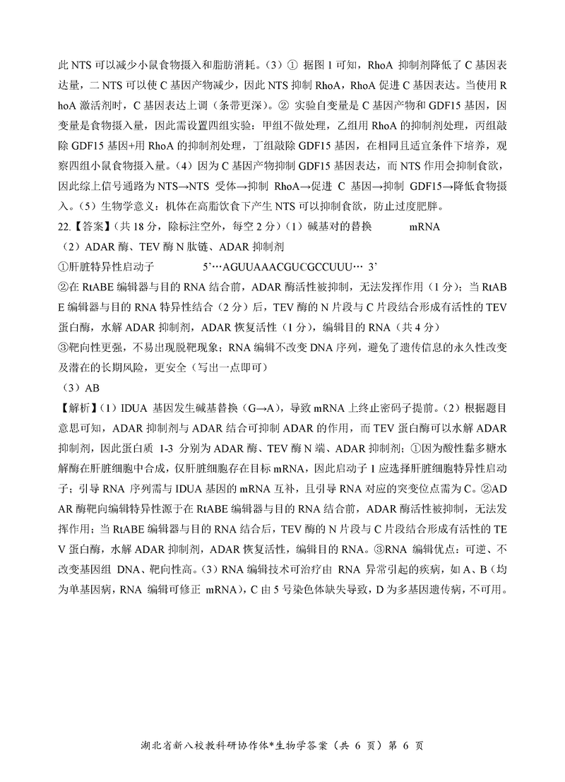 2025年湖北省新八校协作体高三5月联考生物考试已于近日开考,为方便考生考后及时查看考试情况,查漏补缺、弥补不足,本文整理了试题答案解析相关信息!