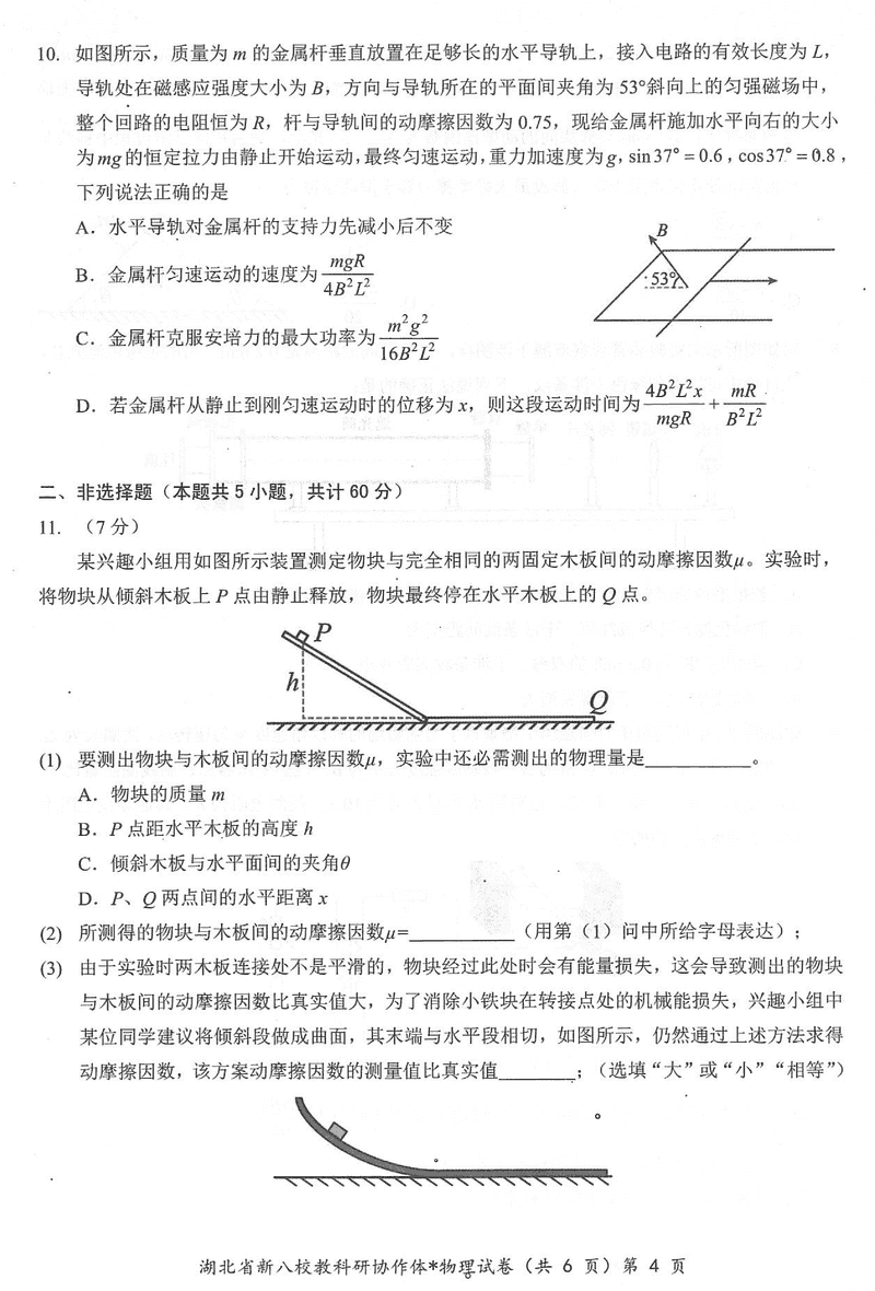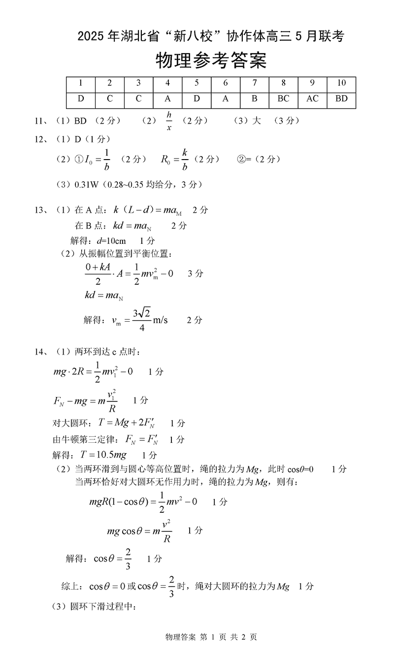 2025年湖北省新八校协作体高三5月联考物理试题及答案