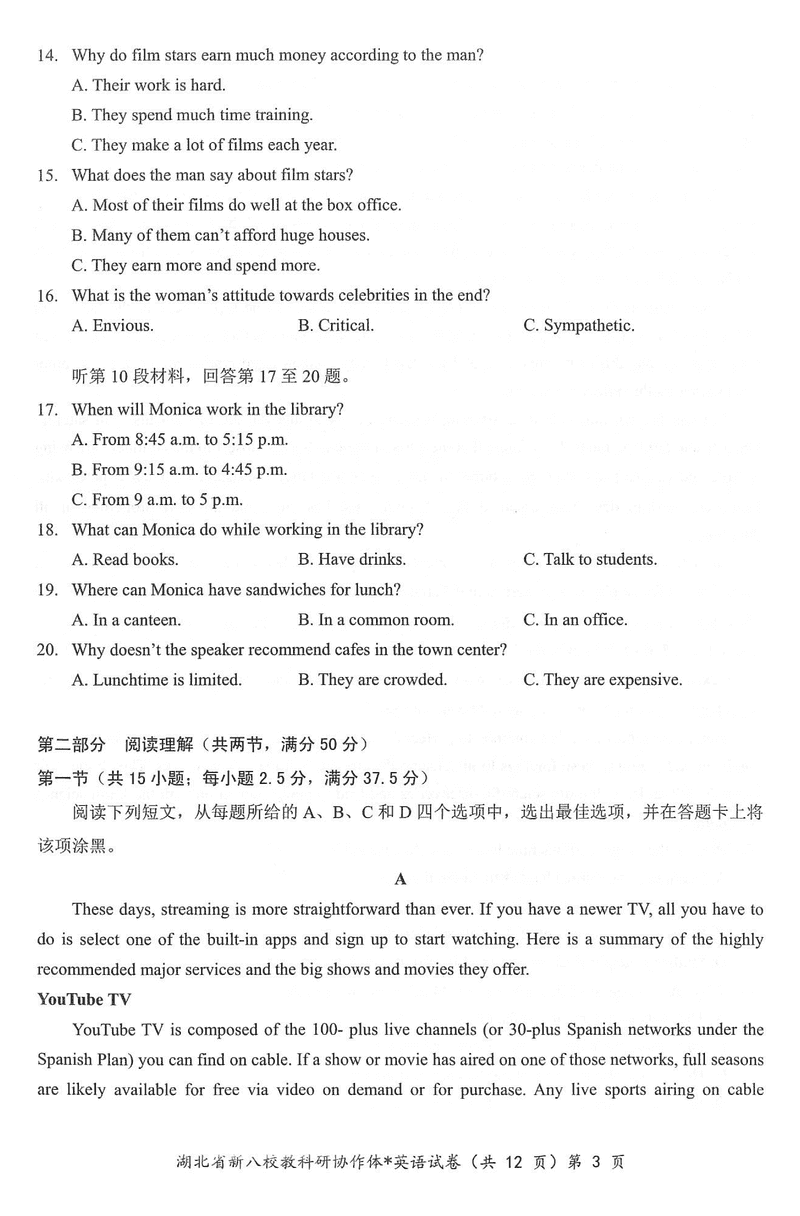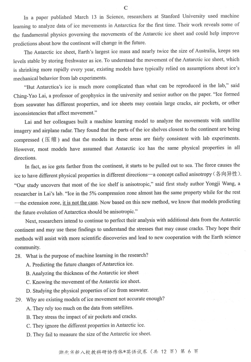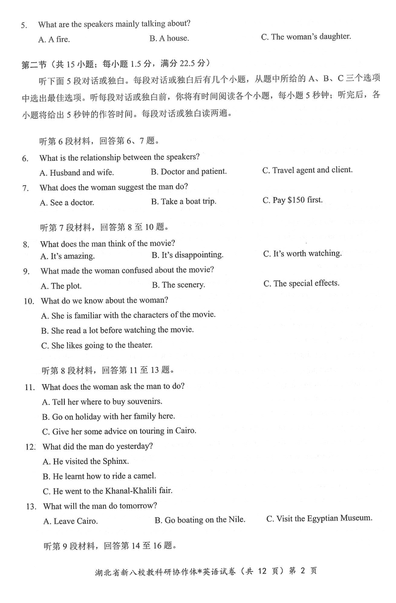 2025年湖北省新八校协作体高三5月联考英语考试已于近日开考,为方便考生考后及时查看考试情况,查漏补缺、弥补不足,本文整理了试题答案解析相关信息!