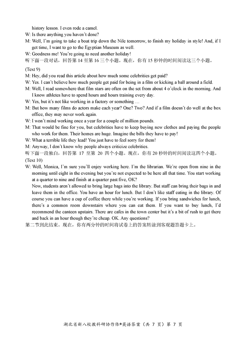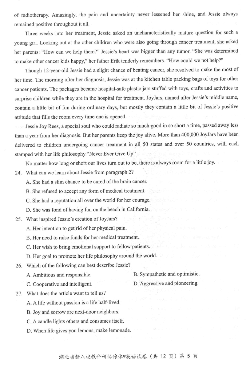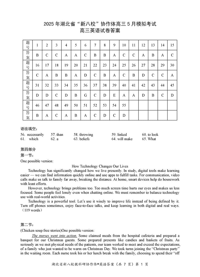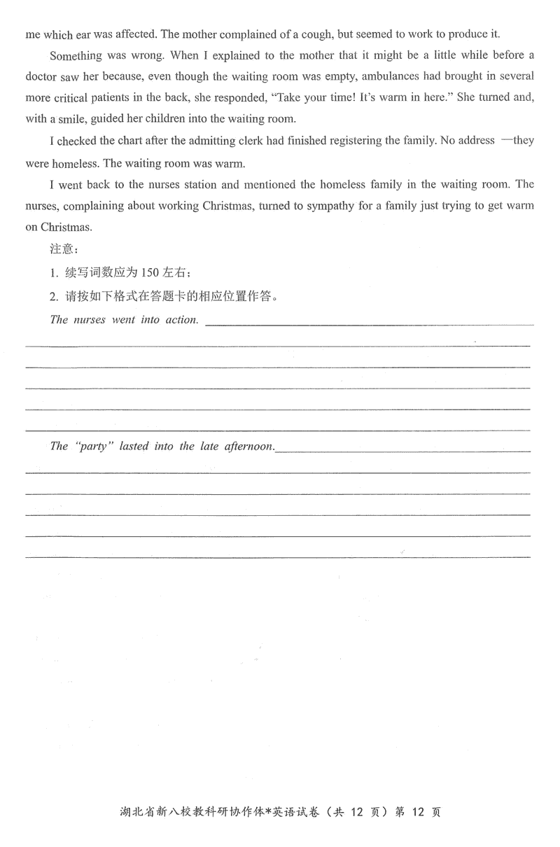 2025年湖北省新八校协作体高三5月联考英语考试已于近日开考,为方便考生考后及时查看考试情况,查漏补缺、弥补不足,本文整理了试题答案解析相关信息!