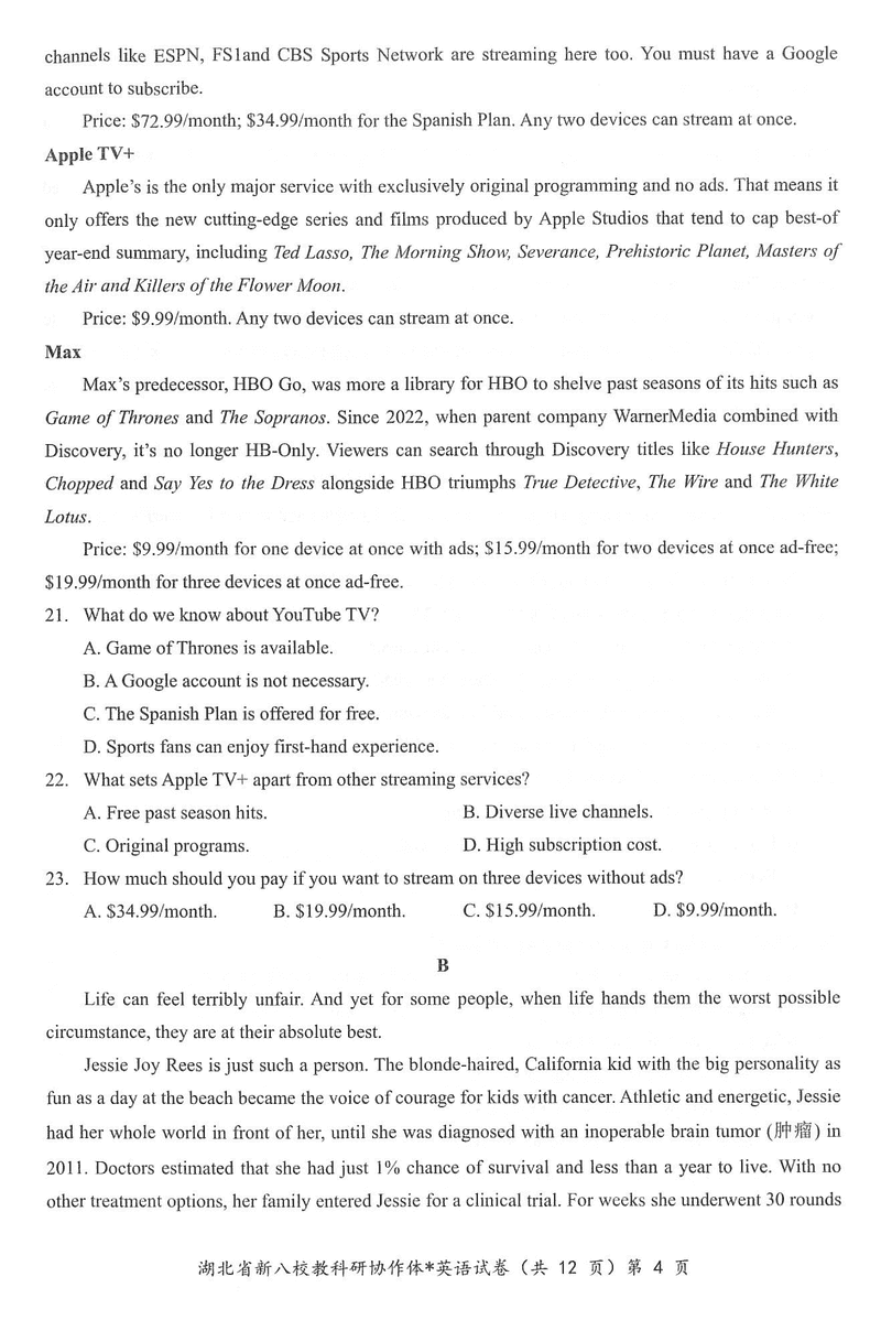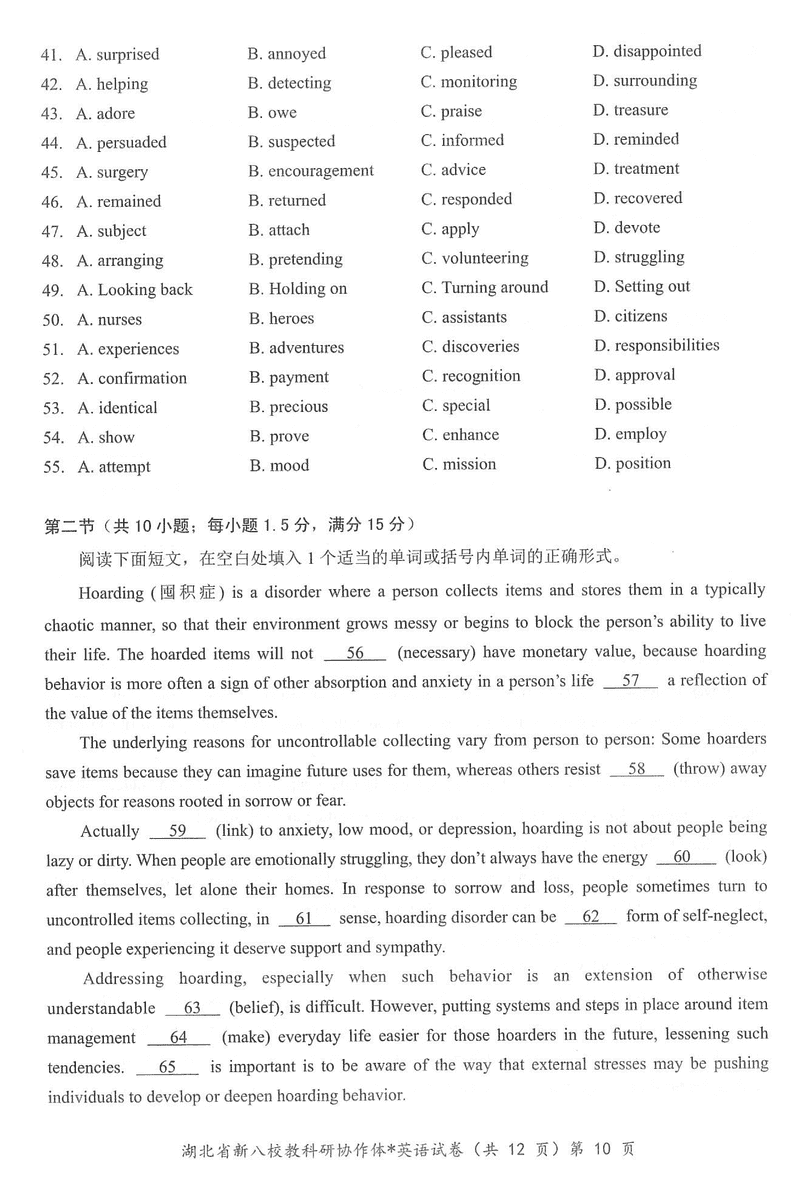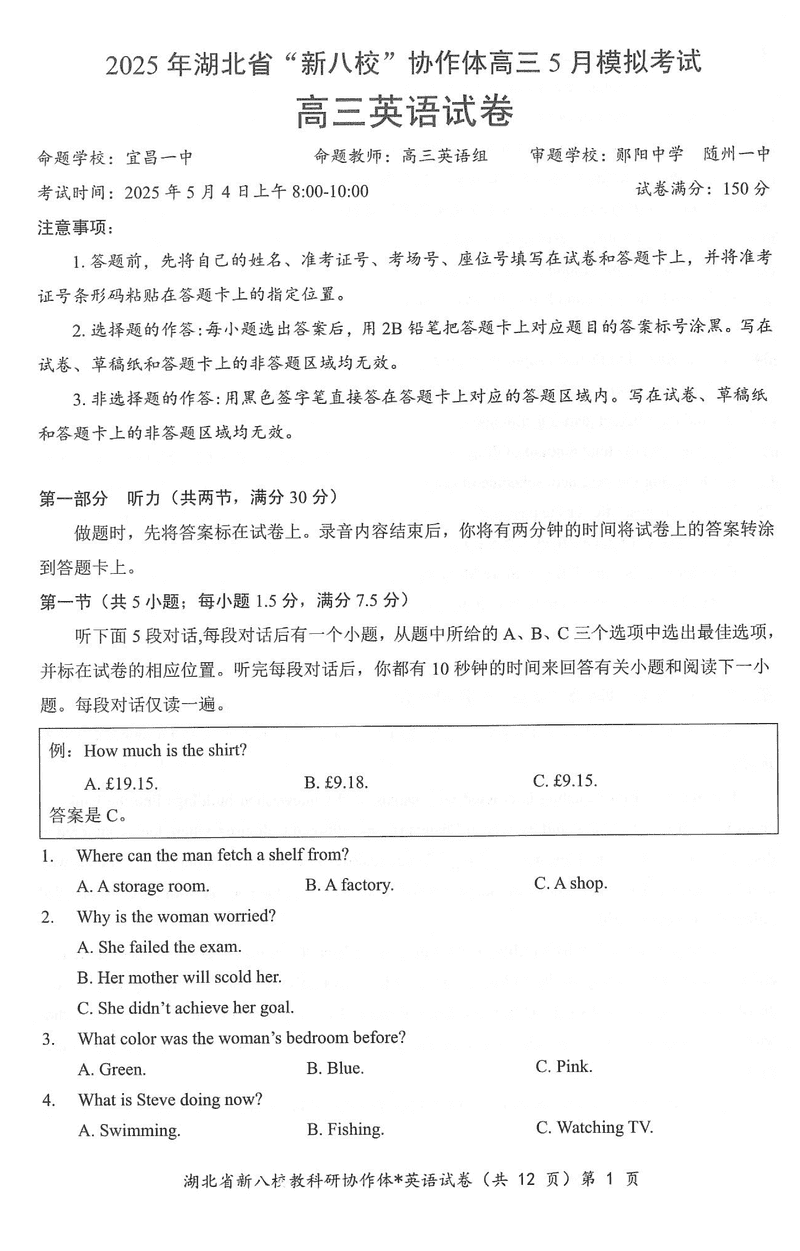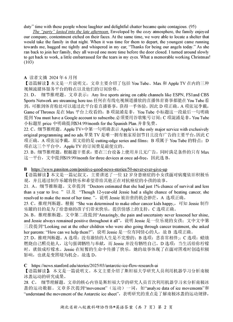 2025年湖北省新八校协作体高三5月联考英语试题及答案