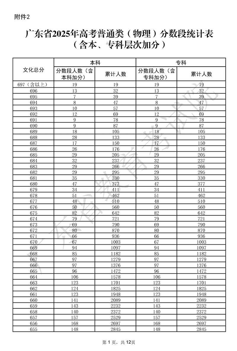 2025广东高考一分一段位次表已经公布,其中物理类690分累计人数是87人;683分累计人数是266人;675分累计人数是642人;663分累计人数是1701人;662分累计人数是1825人。以下是详细内容,大家可以看一看。
