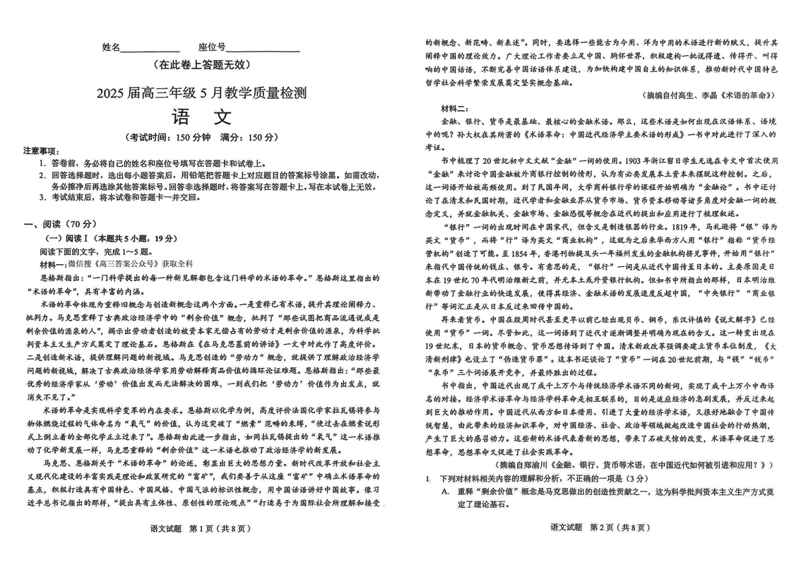 合肥三模2025届高三5月教学质量检测语文试题及答案 时间:2025-05-11 安徽 语文试题 合肥三模2025届高三5月教学质量检测语文考试已于近日开考,为方便考生考后及时查看考试情况,查漏补缺、弥补不足,本文整理了试题答案解析相关信息! 汇总:合肥三模2025届高三5月教学质量检测试题及答案汇总 语文试题及答案解析
