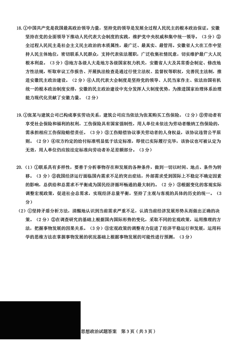 合肥三模2025届高三5月教学质量检测政治试题及答案 时间:2025-05-11 安徽 文综试题 合肥三模2025届高三5月教学质量检测政治考试已于近日开考,为方便考生考后及时查看考试情况,查漏补缺、弥补不足,本文整理了试题答案解析相关信息! 汇总:合肥三模2025届高三5月教学质量检测试题及答案汇总 政治试题及答案解析