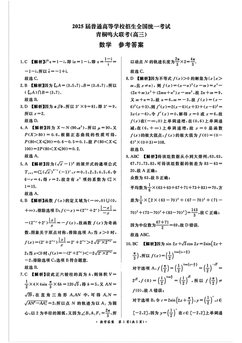 2025届高三下学期5月青桐鸣大联考数学试题及答案 时间:2025-05-11 河南 数学试题 2025届高三下学期5月青桐鸣大联考数学考试已于近日开考,为方便考生考后及时查看考试情况,查漏补缺、弥补不足,本文整理了试题答案解析相关信息! 汇总:2025届高三下学期5月青桐鸣大联考试题及答案汇总 数学试题及答案解析