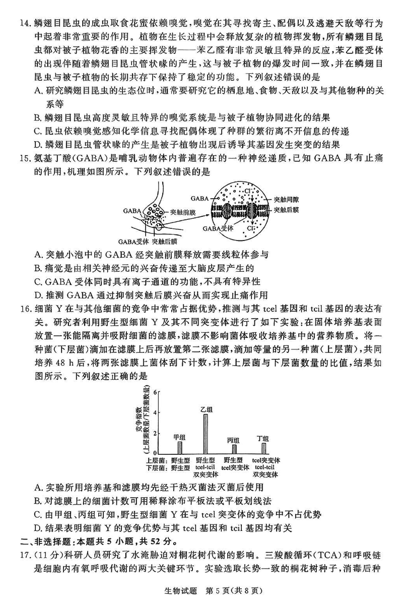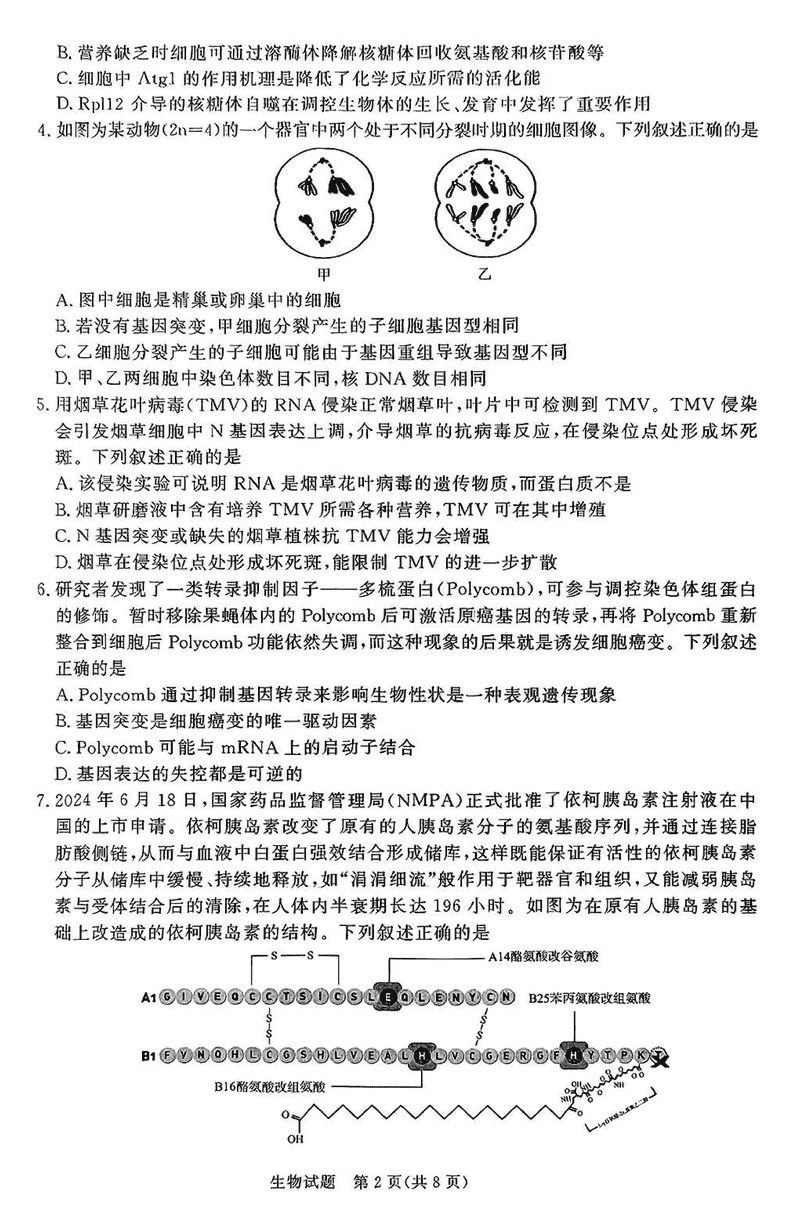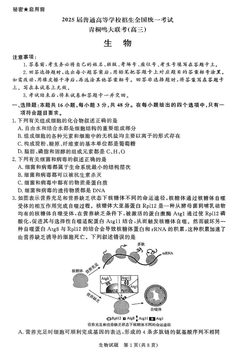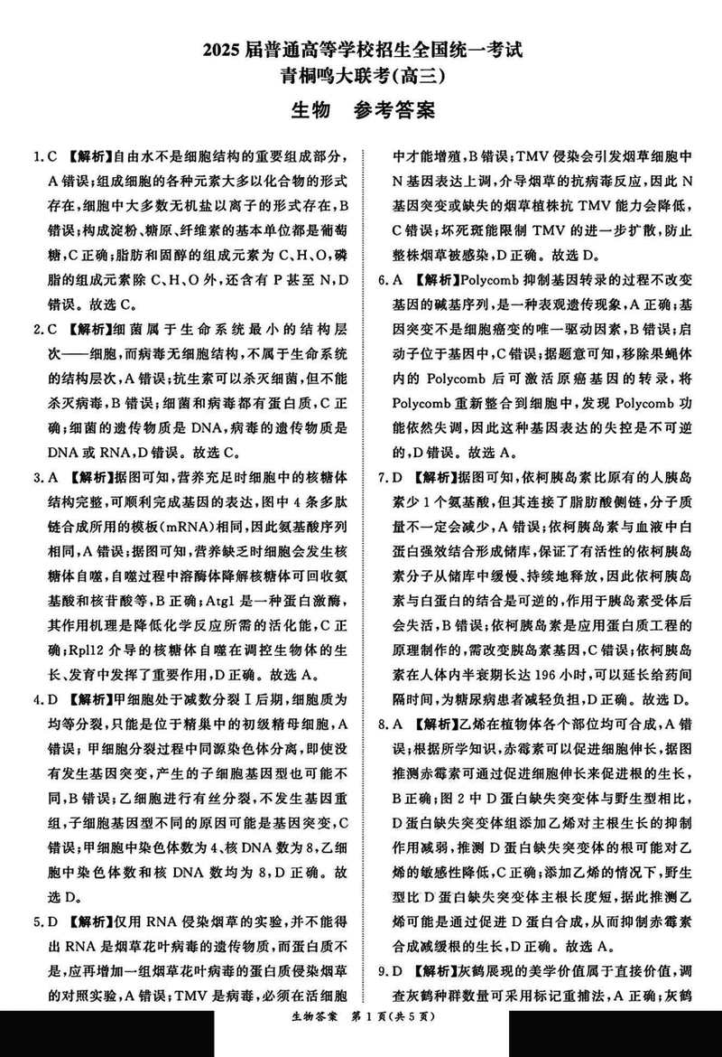 2025届高三下学期5月青桐鸣大联考生物试题及答案 时间:2025-05-11 河南 理综试题 2025届高三下学期5月青桐鸣大联考生物考试已于近日开考,为方便考生考后及时查看考试情况,查漏补缺、弥补不足,本文整理了试题答案解析相关信息! 汇总:2025届高三下学期5月青桐鸣大联考试题及答案汇总 生物试题及答案解析