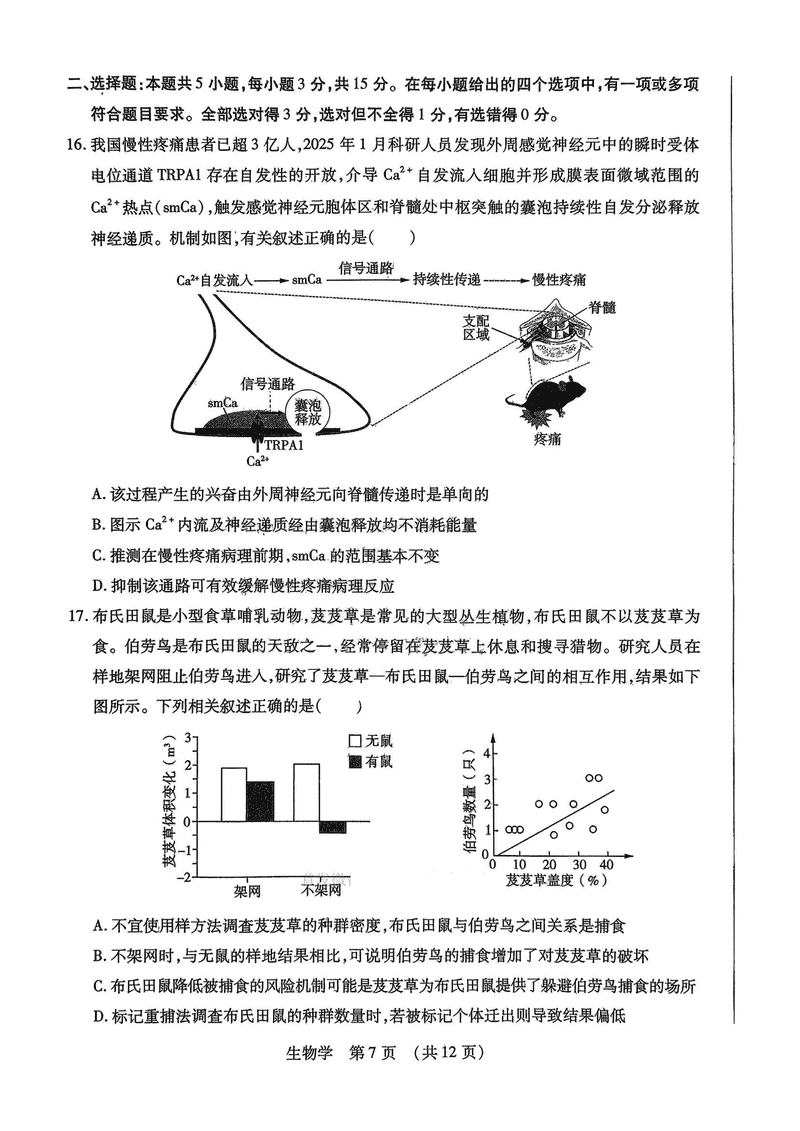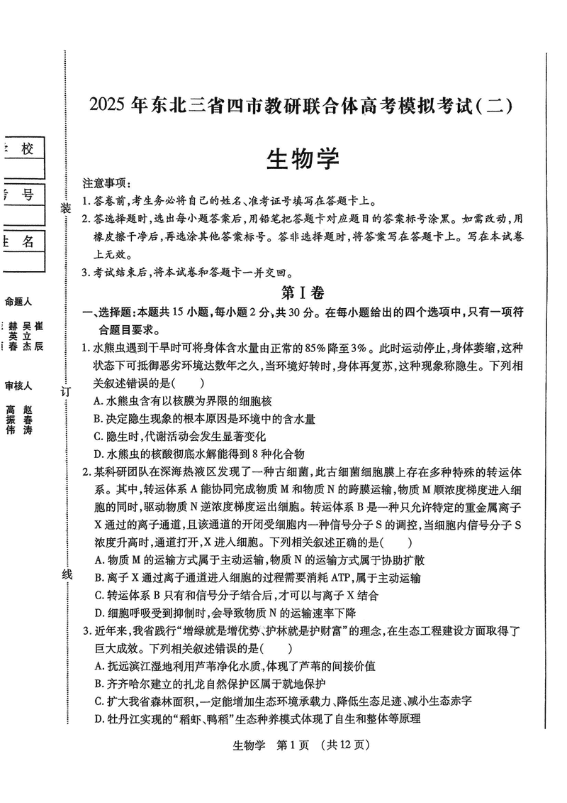 东北三省四市教研联合体2025年高考模拟试题(二)生物试题及答案