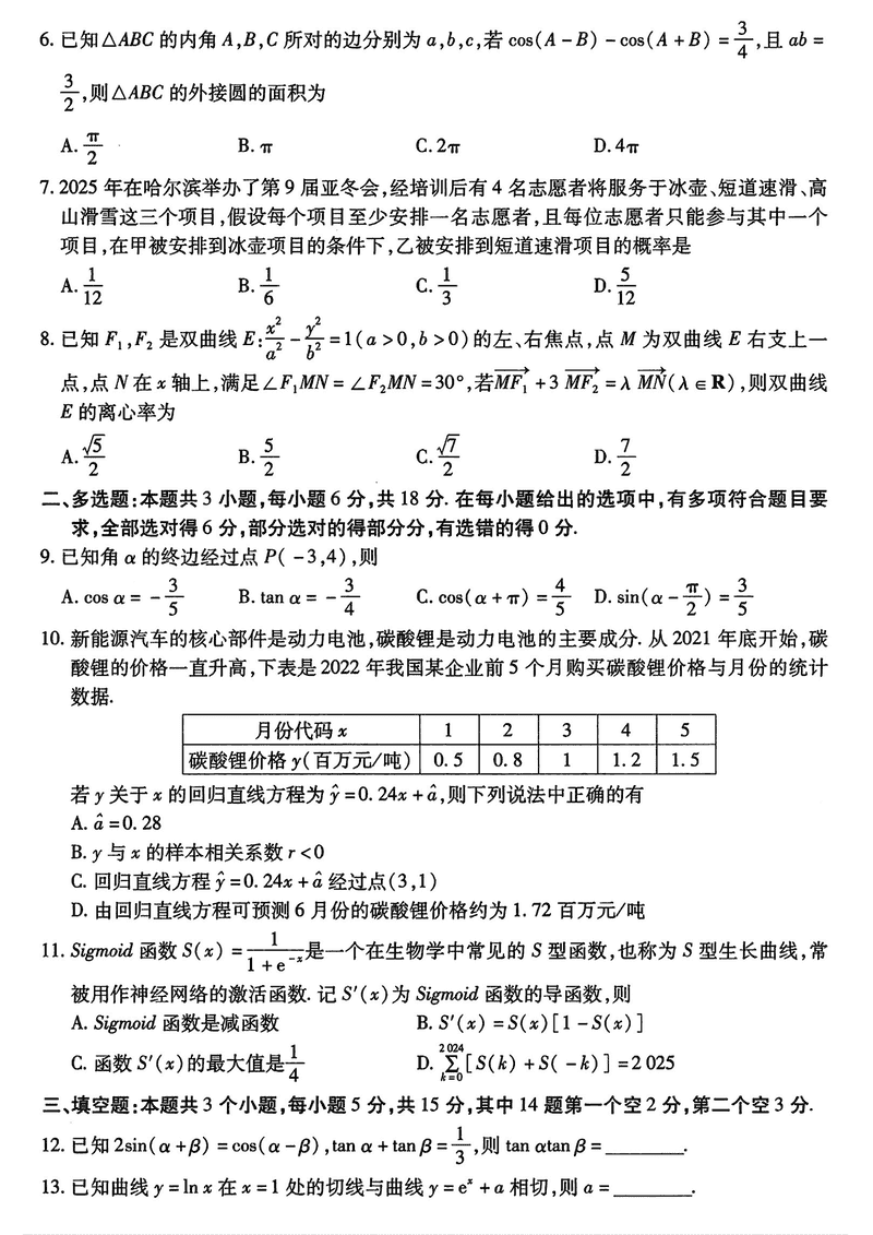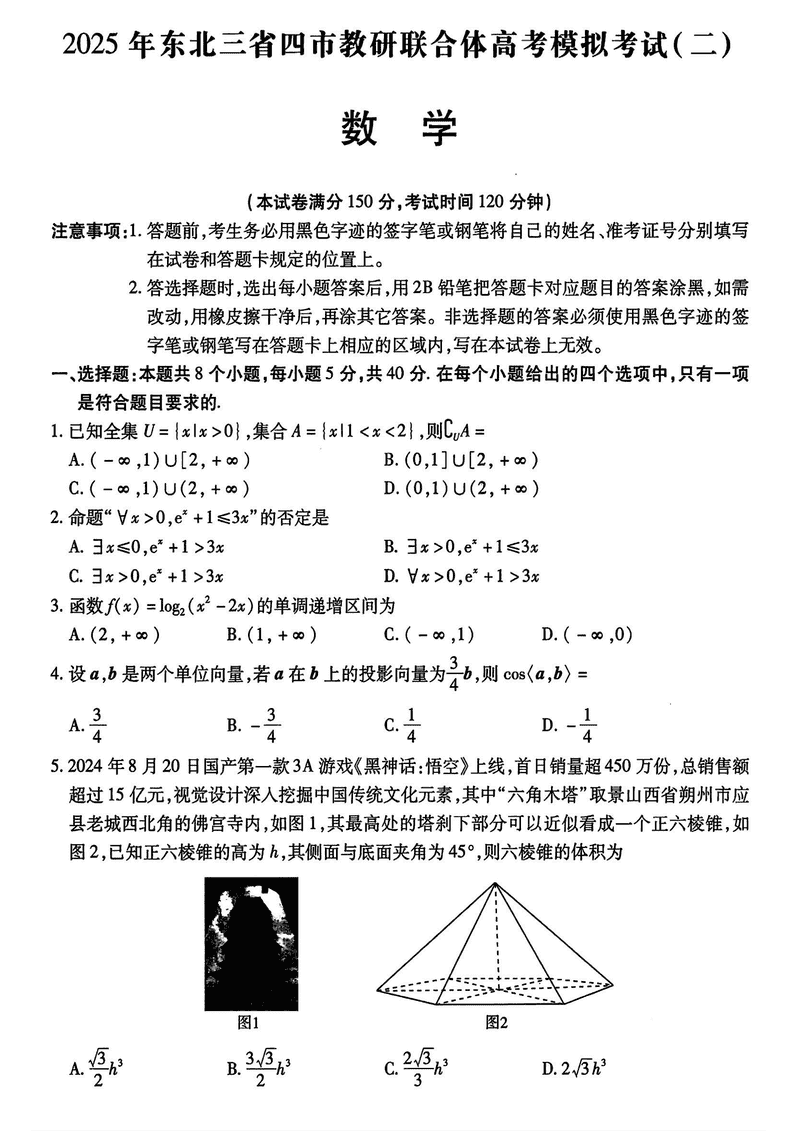 东北三省四市教研联合体2025年高考模拟试题(二)数学试题及答案