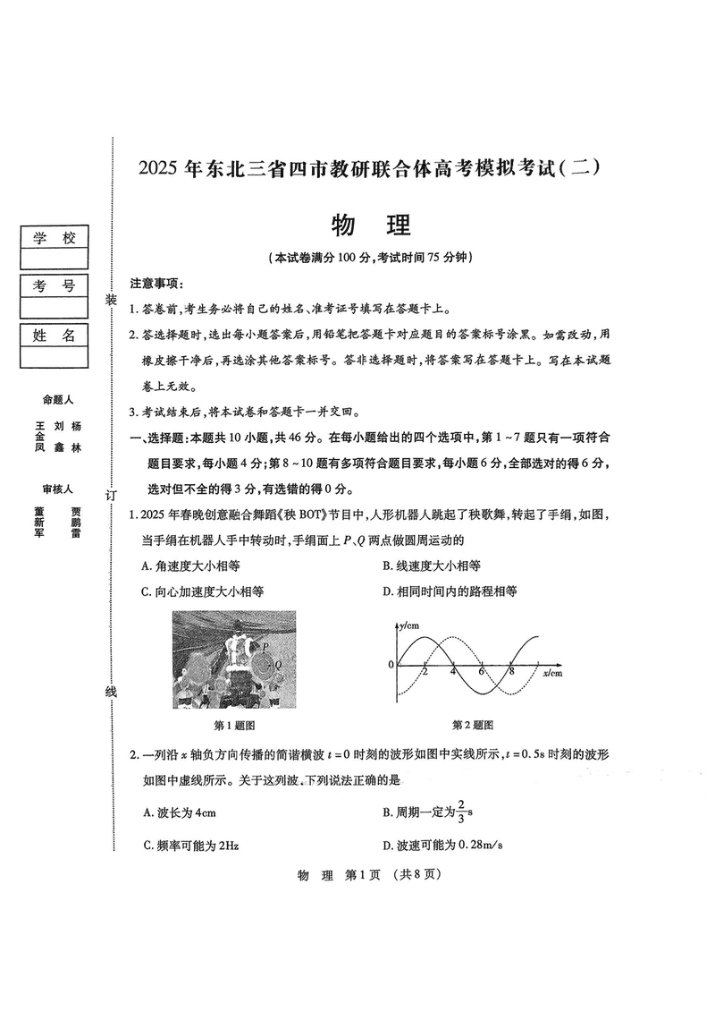 东北三省四市教研联合体2025年高考模拟试题(二)物理考试已于近日开考,为方便考生考后及时查看考试情况,查漏补缺、弥补不足,本文整理了试题答案解析相关信息!