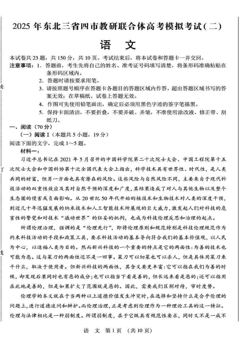 东北三省四市教研联合体2025年高考模拟试题(二)语文考试已于近日开考,为方便考生考后及时查看考试情况,查漏补缺、弥补不足,本文整理了试题答案解析相关信息!