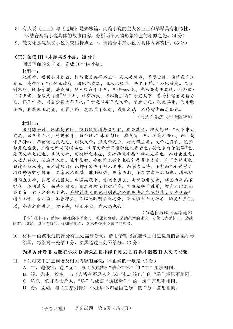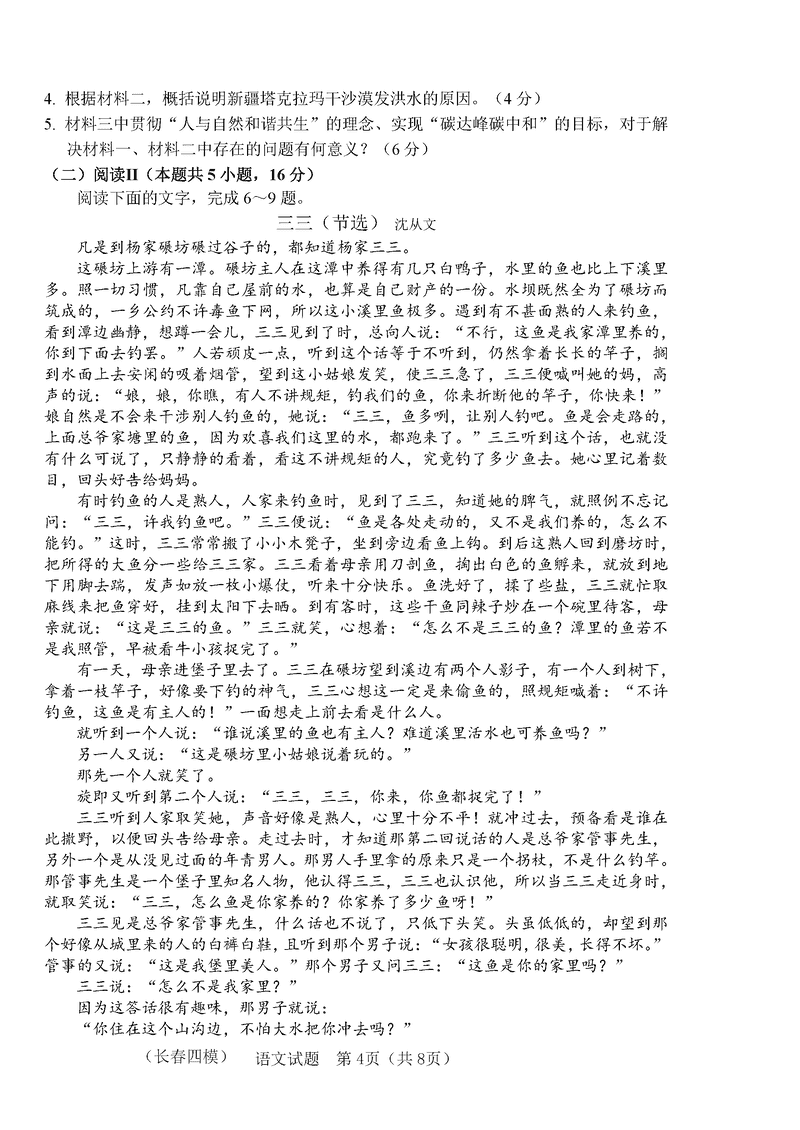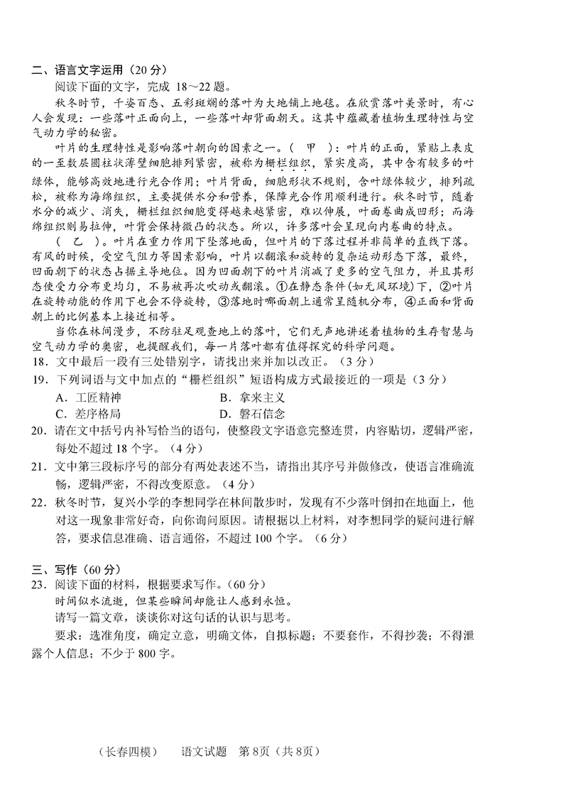 长春四模2025届高三质量监测(四)语文试题及答案 时间:2025-05-11 吉林 语文试题 长春四模2025届高三质量监测(四)语文考试已于近日开考,为方便考生考后及时查看考试情况,查漏补缺、弥补不足,本文整理了试题答案解析相关信息! 汇总:长春四模2025届高三质量监测(四)试题及答案汇总 语文试题及答案解析