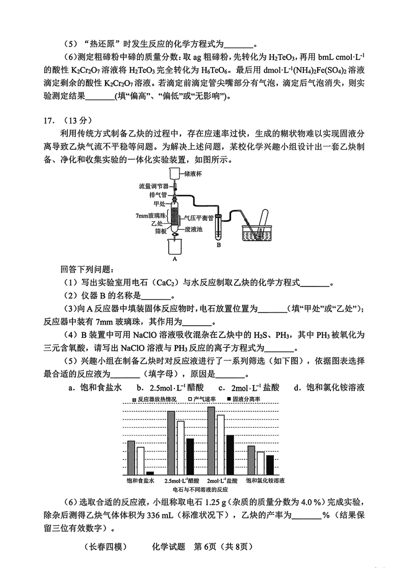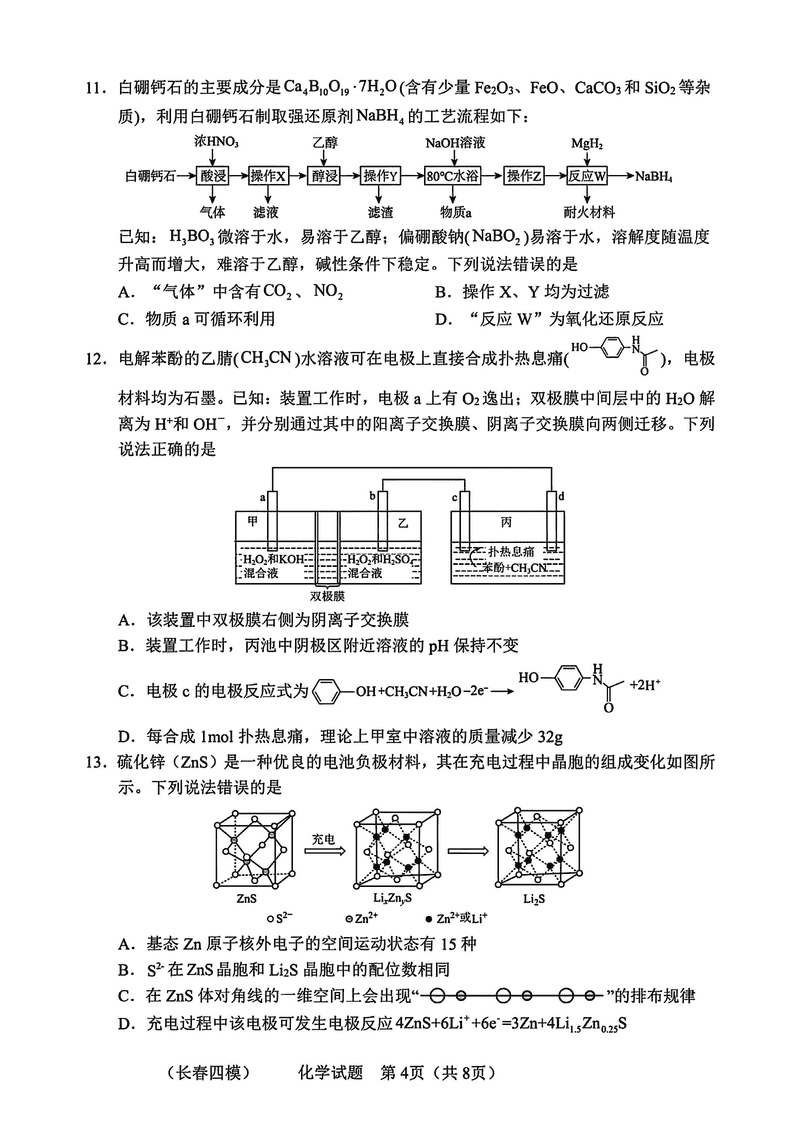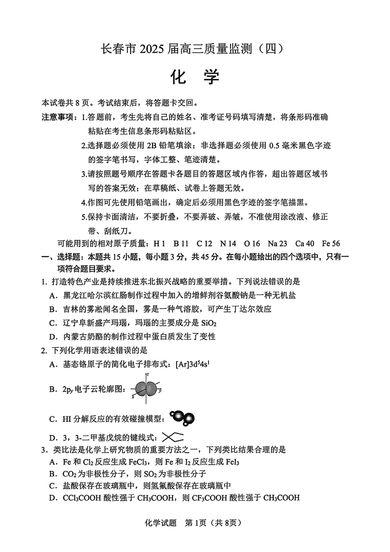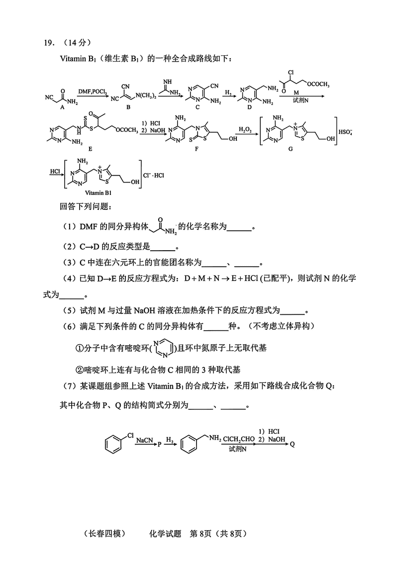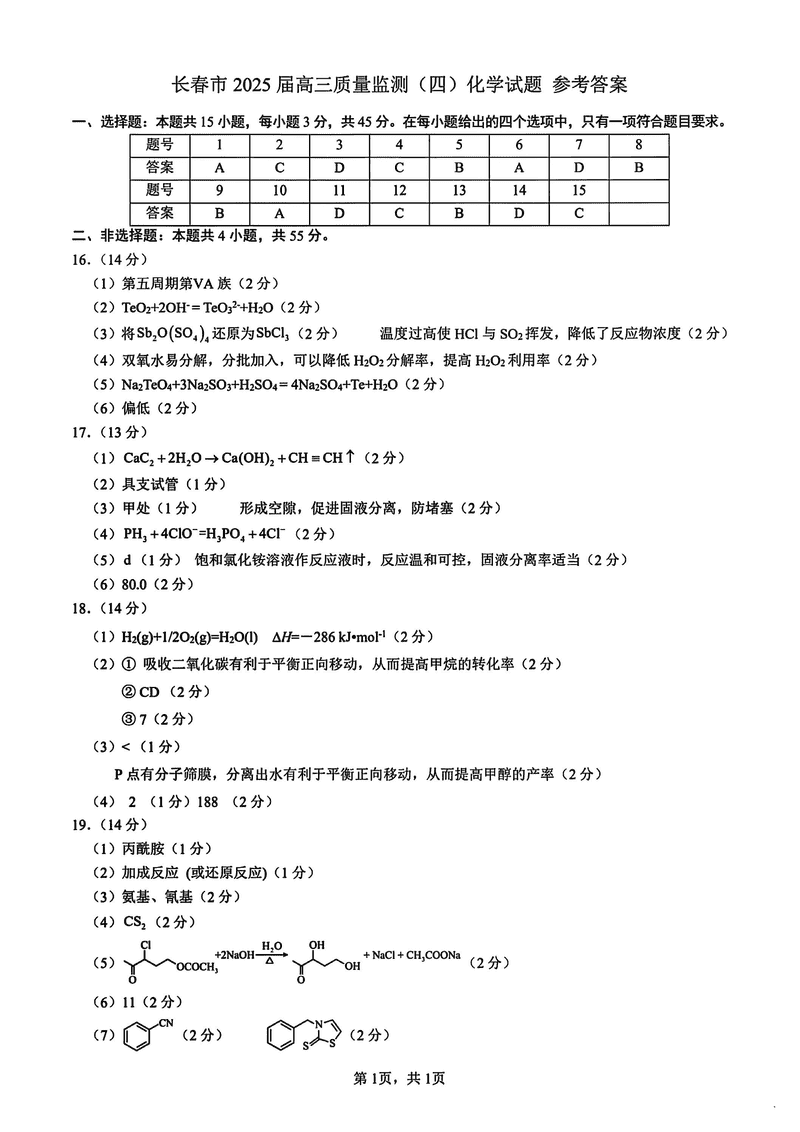 长春四模2025届高三质量监测(四)化学试题及答案 时间:2025-05-11 吉林 理综试题 长春四模2025届高三质量监测(四)化学考试已于近日开考,为方便考生考后及时查看考试情况,查漏补缺、弥补不足,本文整理了试题答案解析相关信息! 汇总:长春四模2025届高三质量监测(四)试题及答案汇总 化学试题及答案解析