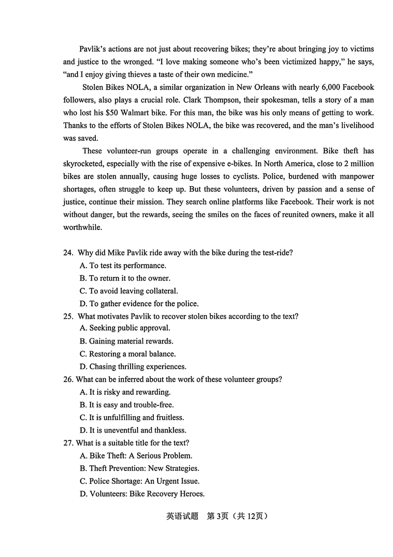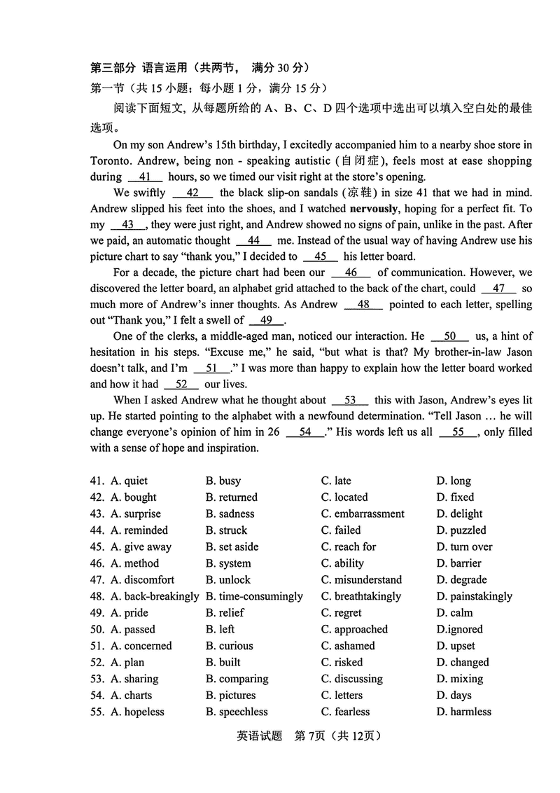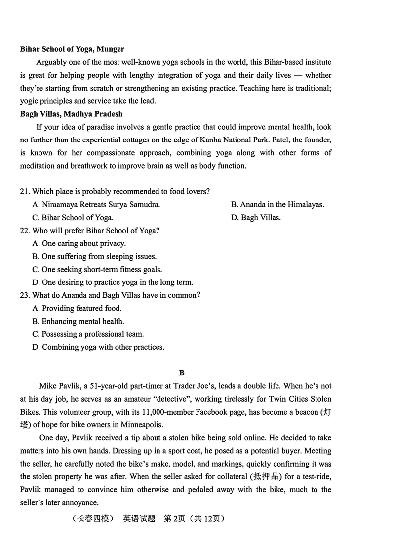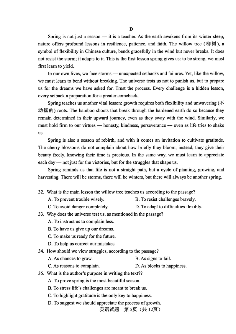 长春四模2025届高三质量监测(四)英语试题及答案 时间:2025-05-11 吉林 英语试题 长春四模2025届高三质量监测(四)英语考试已于近日开考,为方便考生考后及时查看考试情况,查漏补缺、弥补不足,本文整理了试题答案解析相关信息! 汇总:长春四模2025届高三质量监测(四)试题及答案汇总 英语试题及答案解析