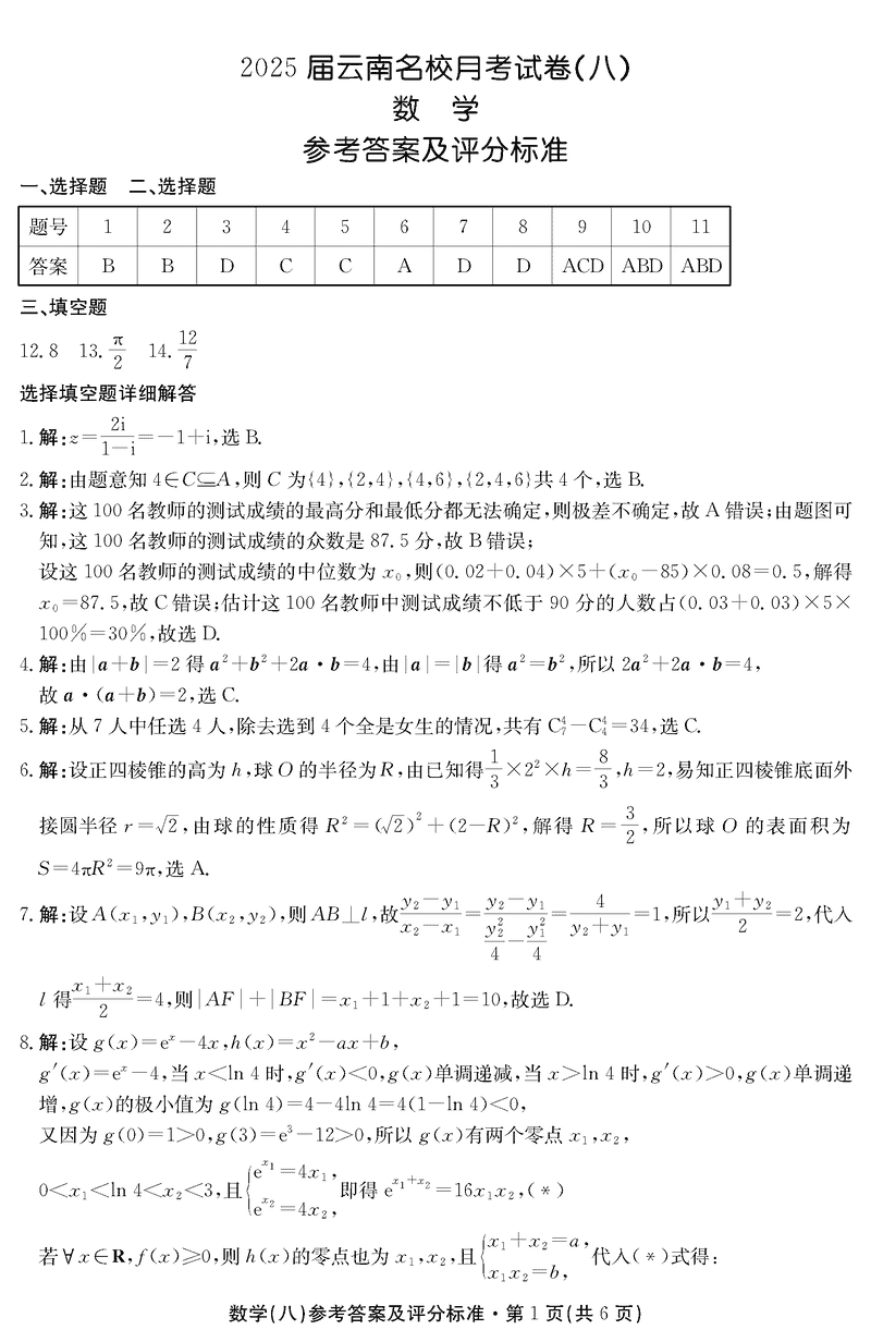 云南名校联盟2025届高三月考八数学试题及答案 时间:2025-05-11 云南 数学试题 云南名校联盟2025届高三月考八数学考试已于近日开考,为方便考生考后及时查看考试情况,查漏补缺、弥补不足,本文整理了试题答案解析相关信息! 汇总:云南省名校联盟2025届高三月考(八)试题及答案汇总 数学试题及答案解析