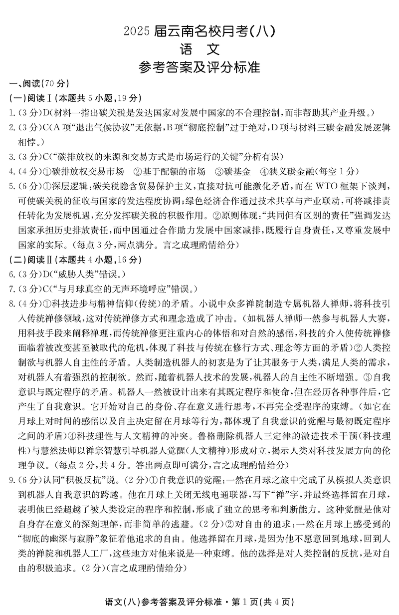 云南名校联盟2025届高三月考八语文试题及答案 时间:2025-05-11 云南 语文试题 云南名校联盟2025届高三月考八语文考试已于近日开考,为方便考生考后及时查看考试情况,查漏补缺、弥补不足,本文整理了试题答案解析相关信息! 汇总:云南省名校联盟2025届高三月考(八)试题及答案汇总 语文试题及答案解析