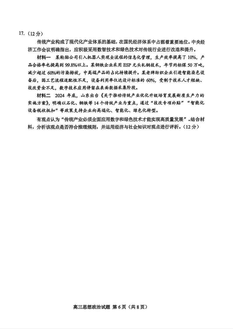 山东省菏泽市2025年高三二模政治试题及答案 时间:2025-05-11 山东 文综试题 山东省菏泽市2025年高三二模政治考试已于近日开考,为方便考生考后及时查看考试情况,查漏补缺、弥补不足,本文整理了试题答案解析相关信息! 汇总:山东省菏泽市2025年高三二模考试试题及答案汇总 政治试题及答案解析