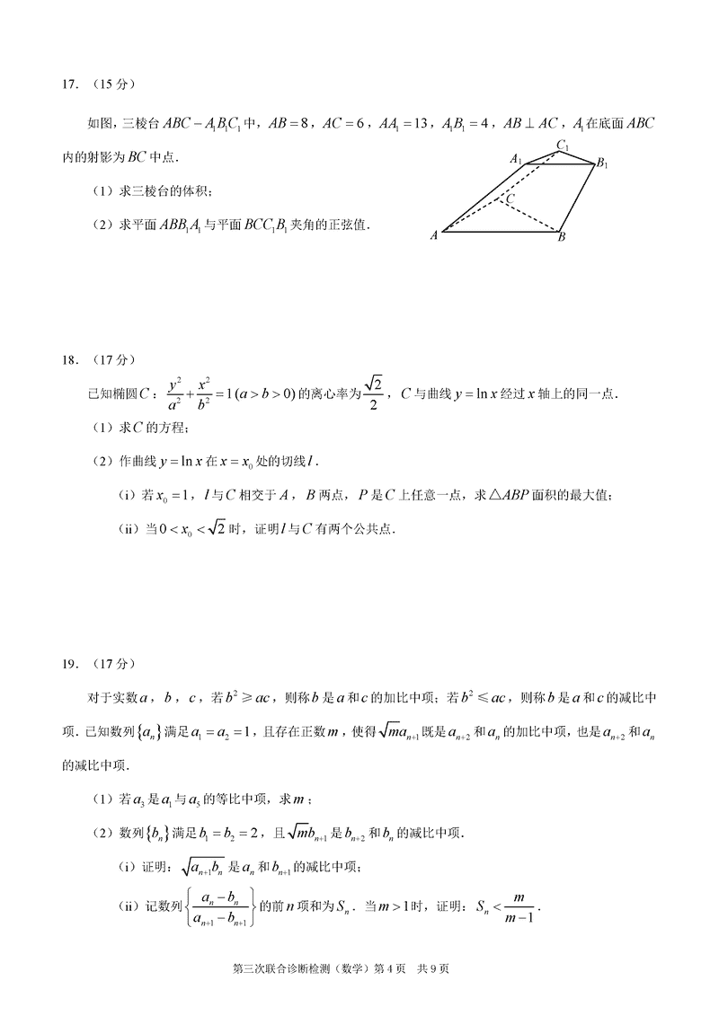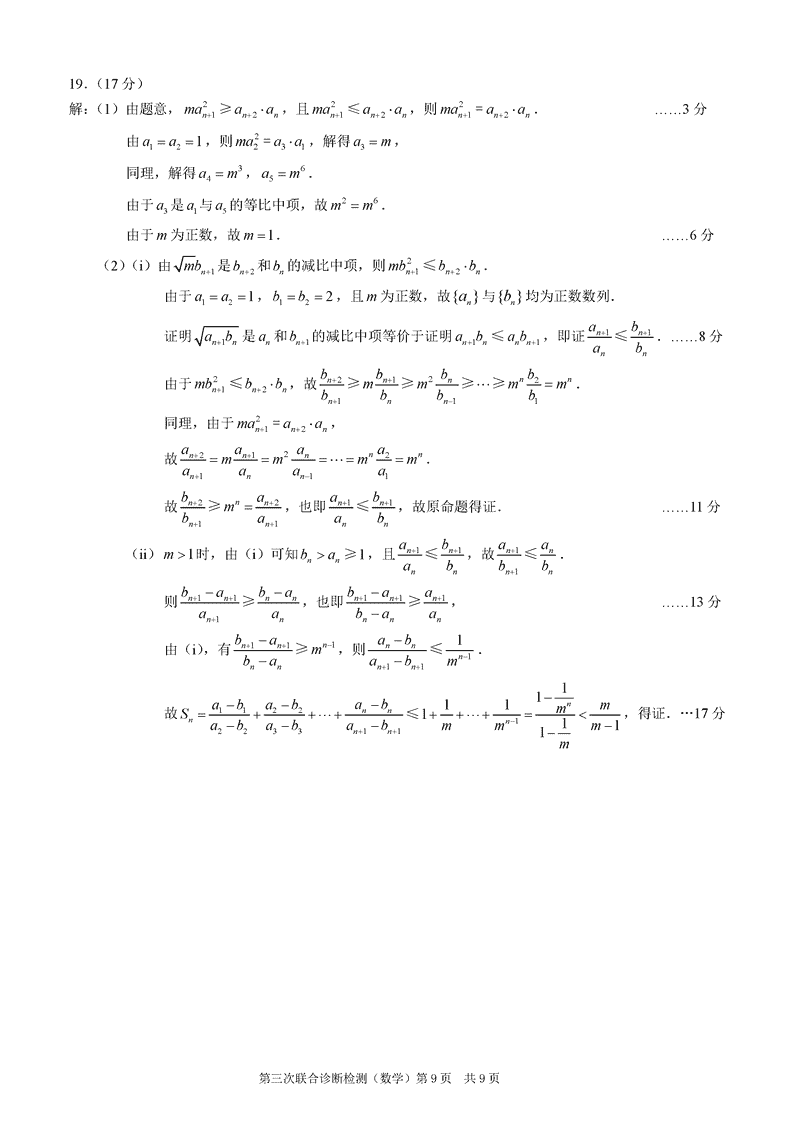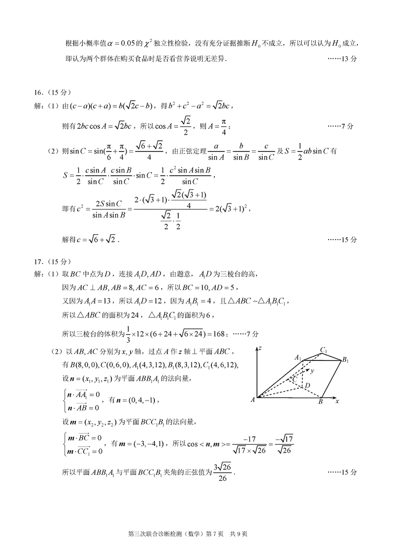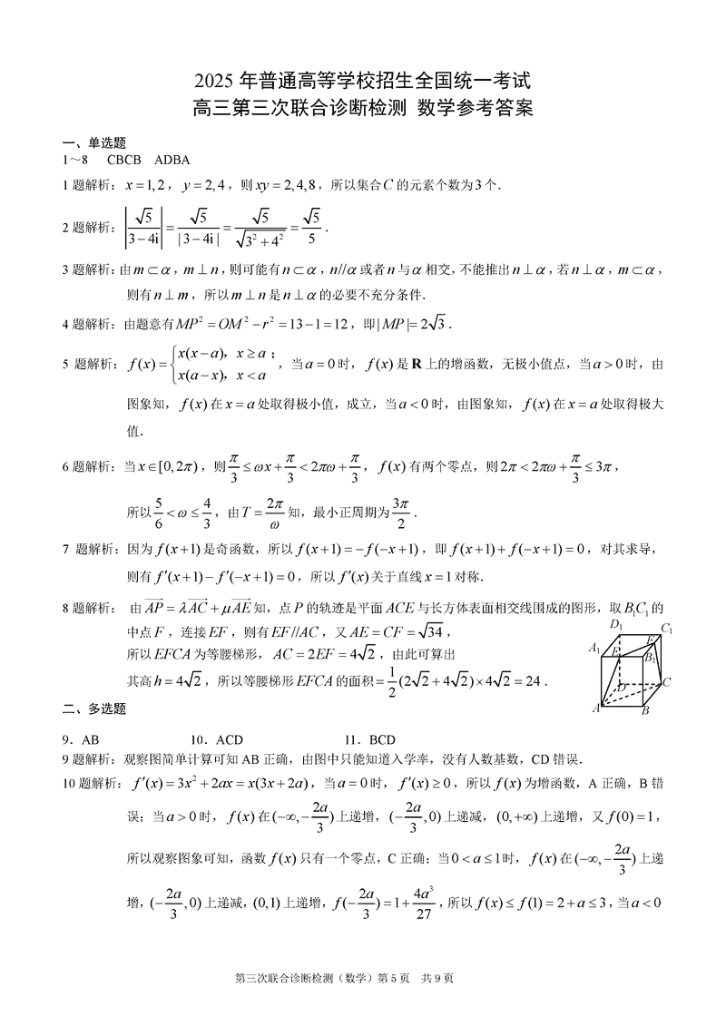 重庆康德三诊2025年高三第三次联合检测数学试题及答案
