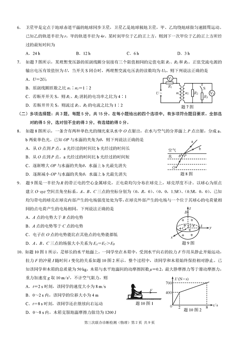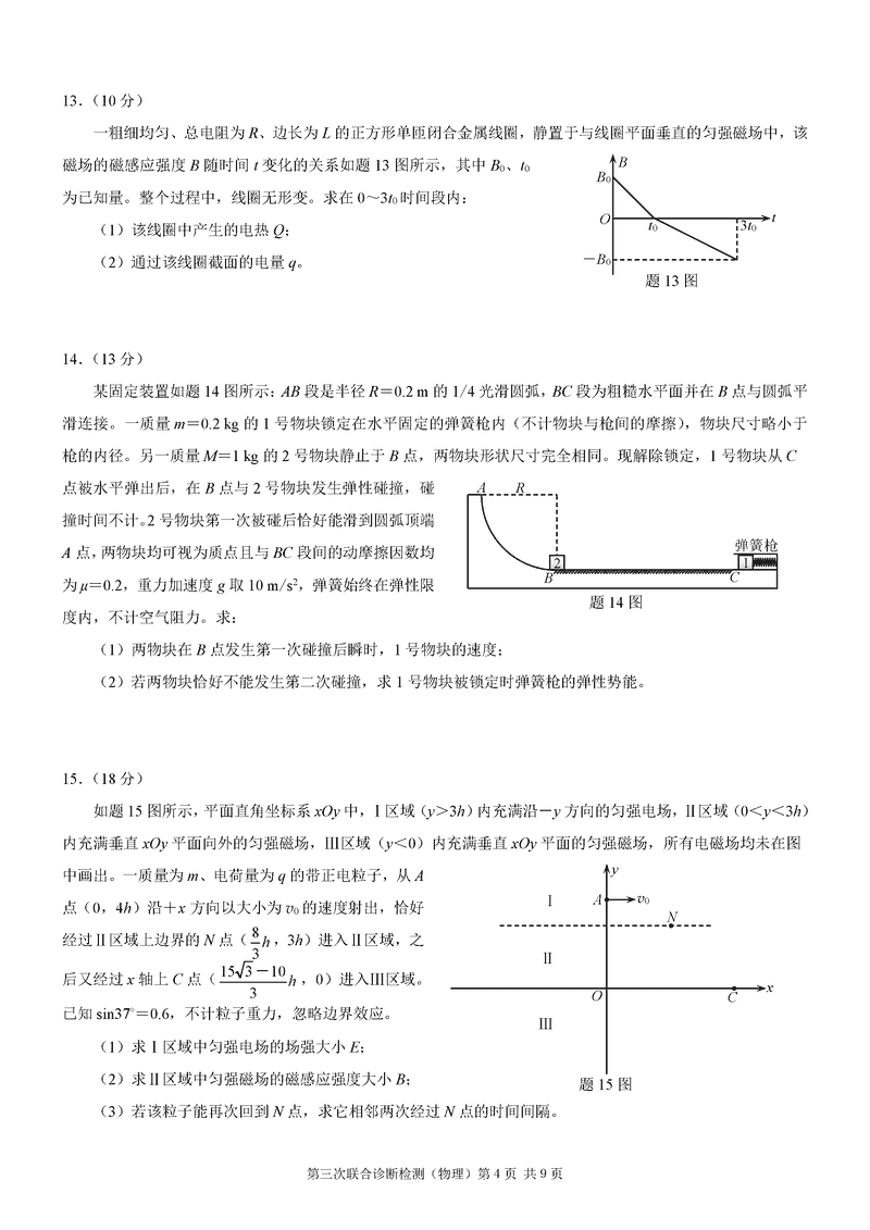 重庆康德三诊2025年高三第三次联合检测物理试题及答案