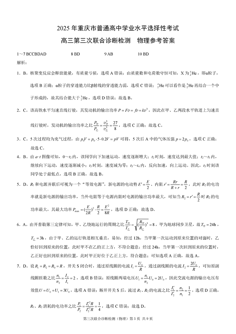 重庆康德三诊2025年高三第三次联合检测物理考试已于近日开考,为方便考生考后及时查看考试情况,查漏补缺、弥补不足,本文整理了试题答案解析相关信息!