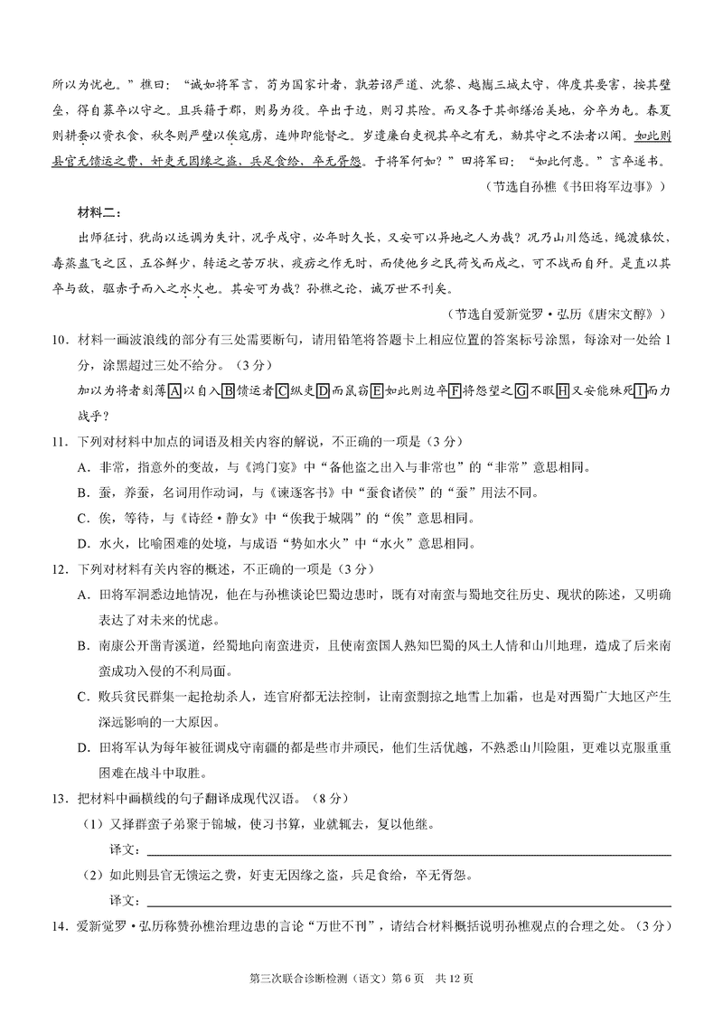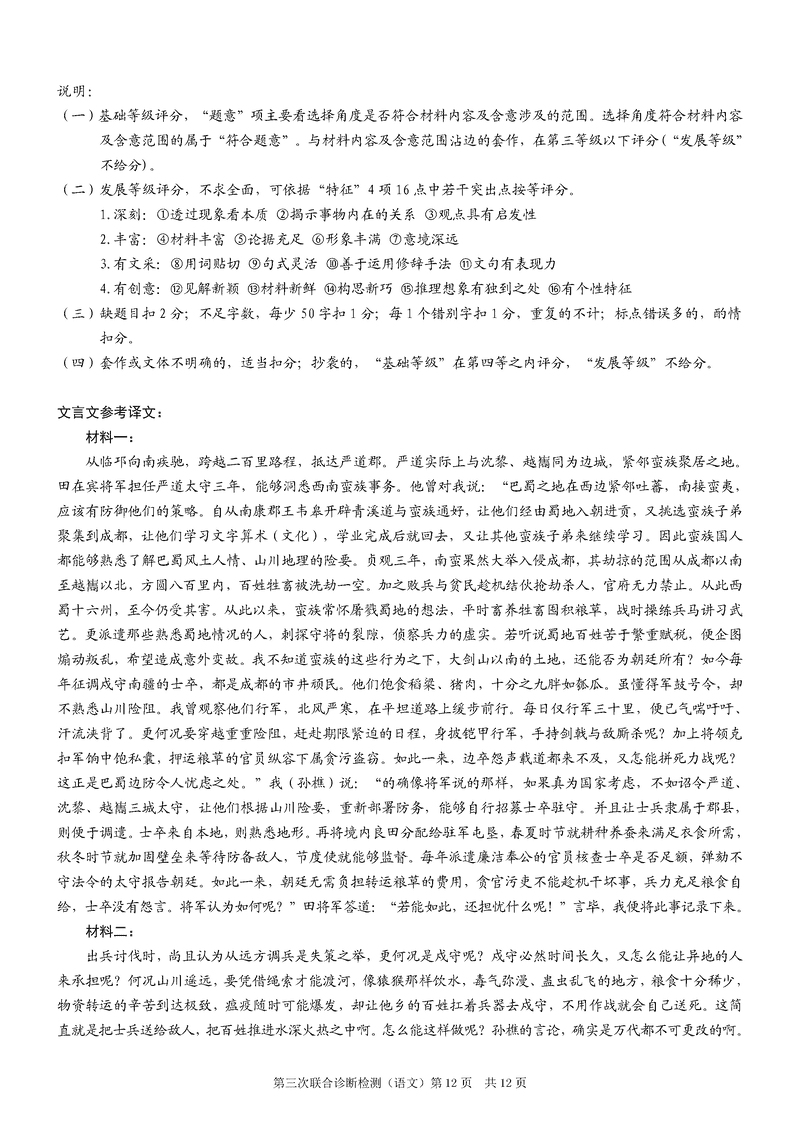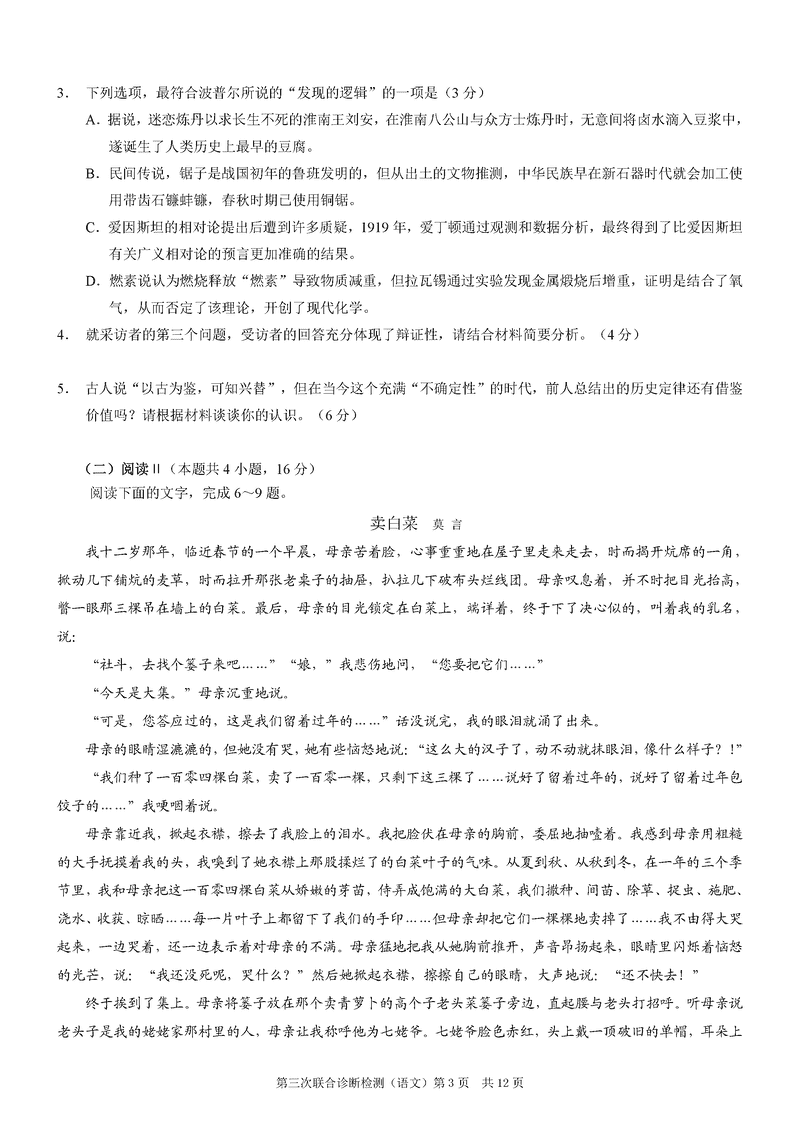 重庆康德三诊2025年高三第三次联合检测语文试题及答案