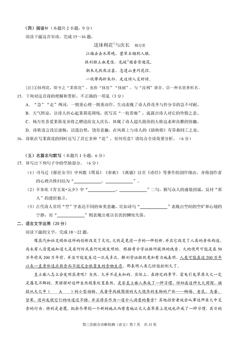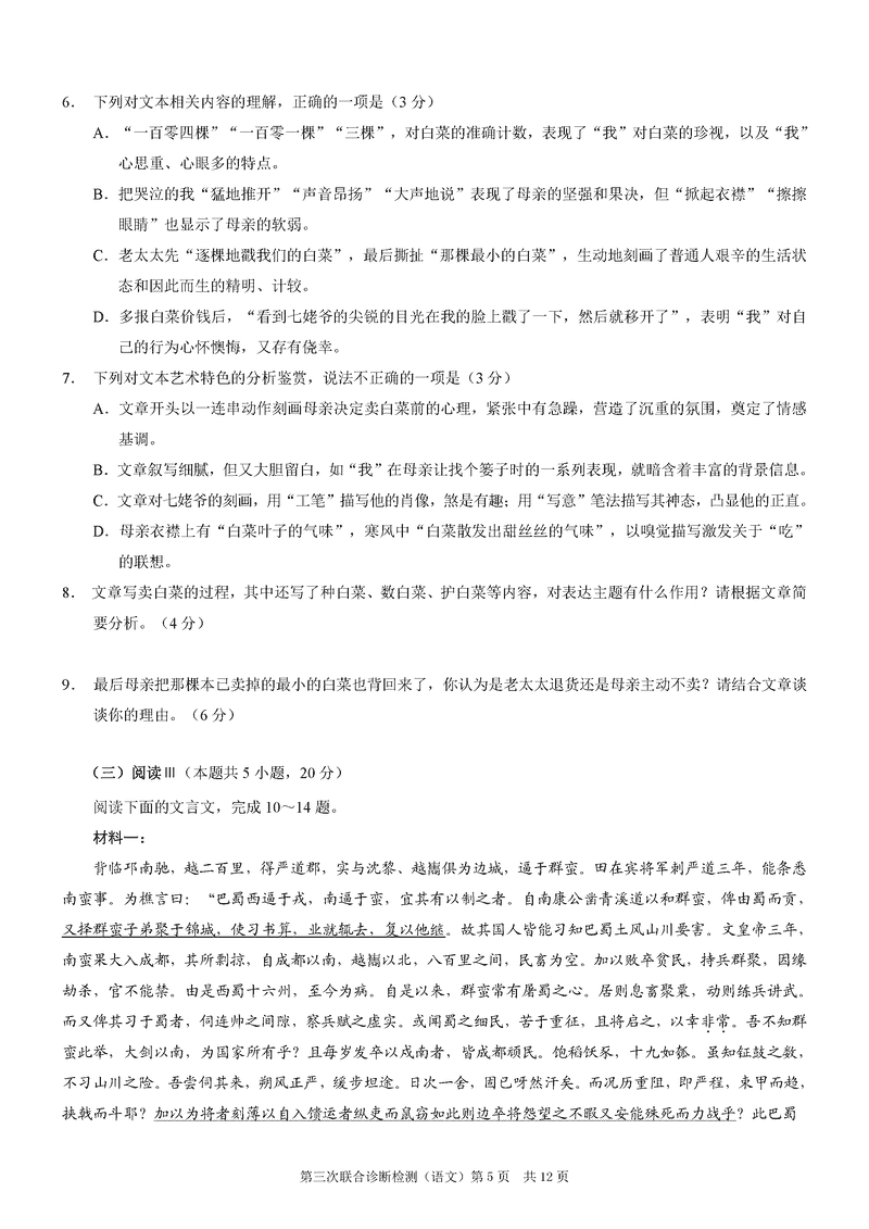 重庆 语文试题
