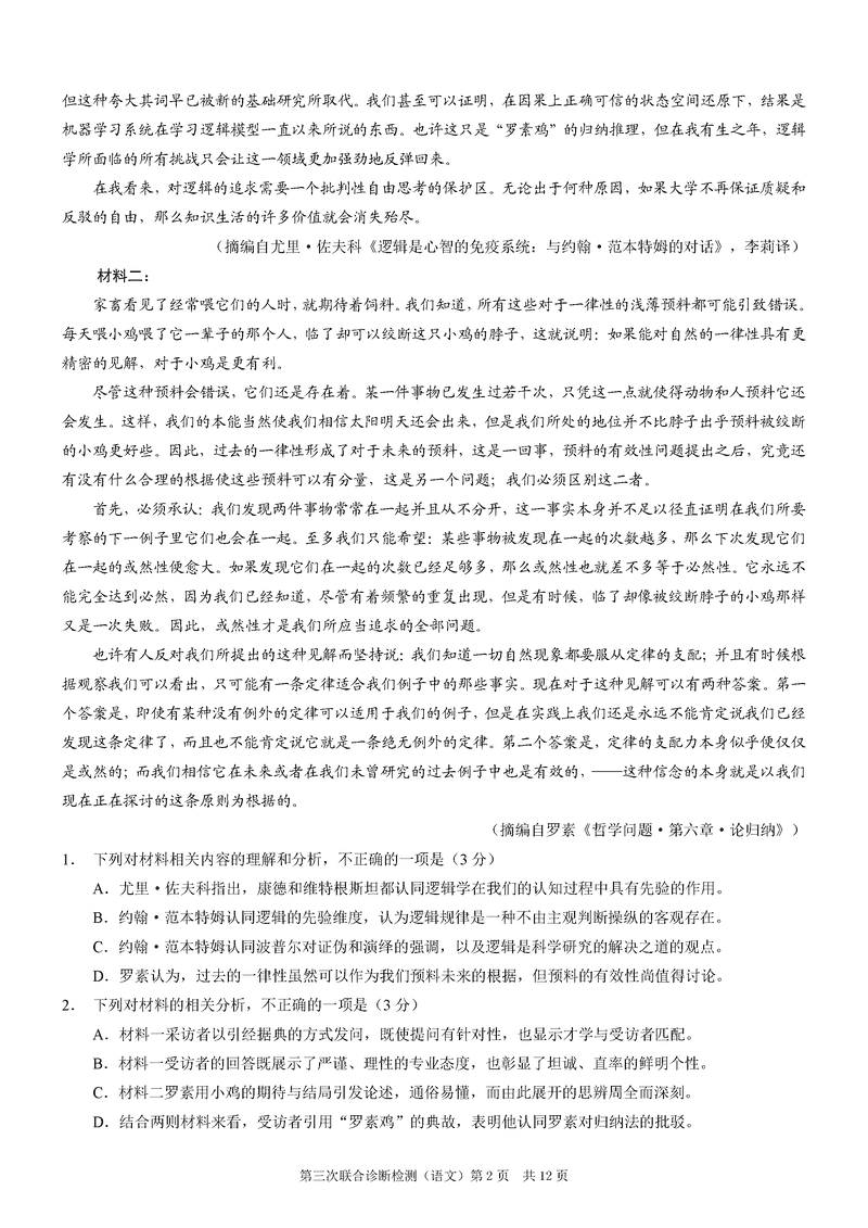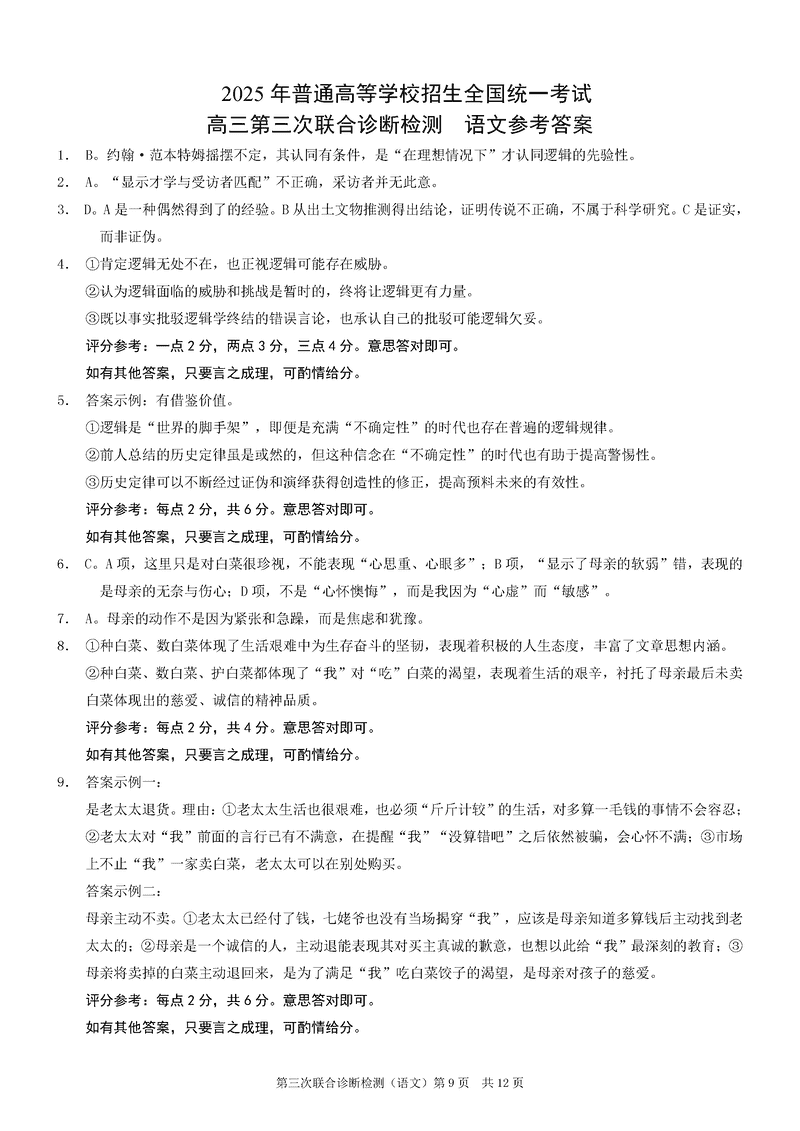 重庆康德三诊2025年高三第三次联合检测语文考试已于近日开考,为方便考生考后及时查看考试情况,查漏补缺、弥补不足,本文整理了试题答案解析相关信息!