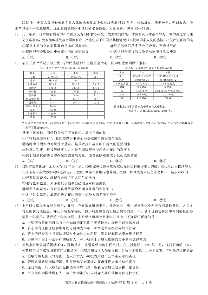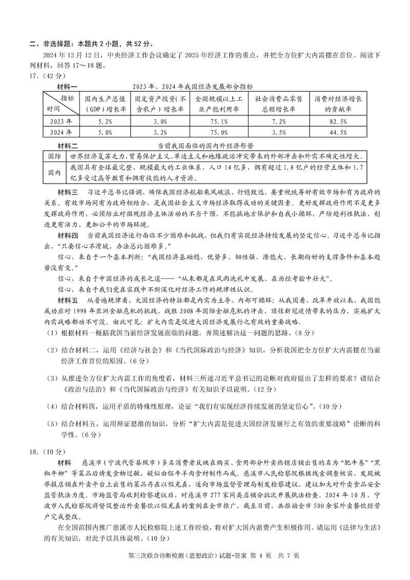 重庆康德三诊2025年高三第三次联合检测政治试题及答案