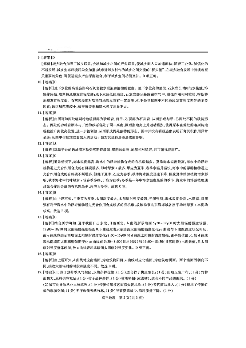 地理试题及答案解析