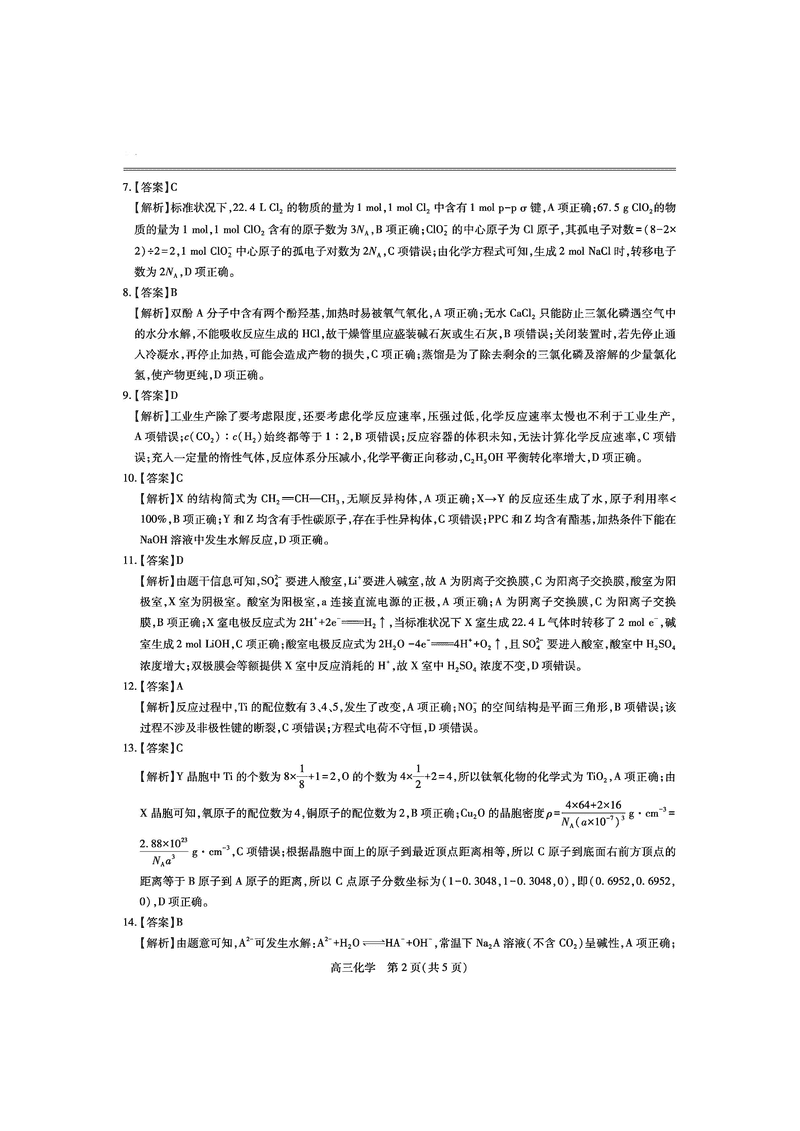 江西稳派上进联考2025届高三5月联合测评化学试题及答案