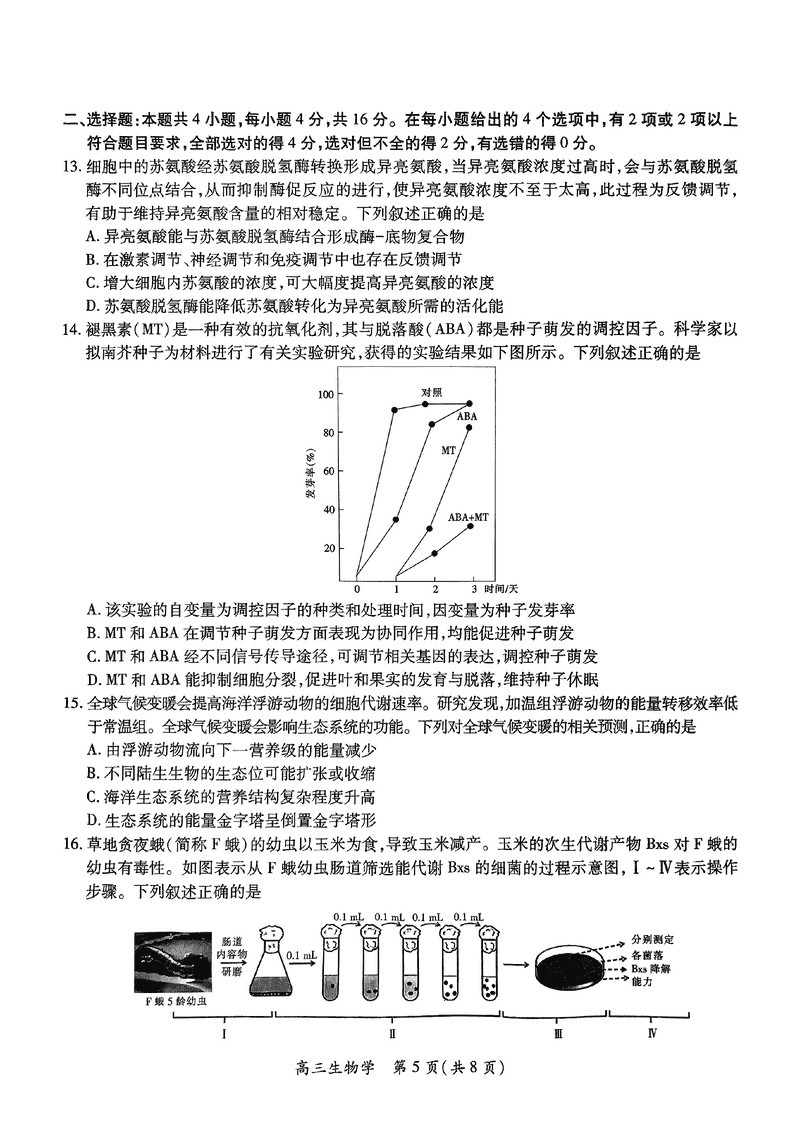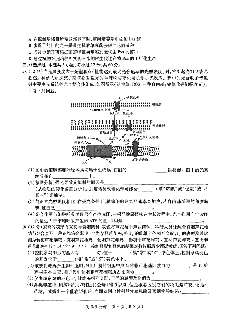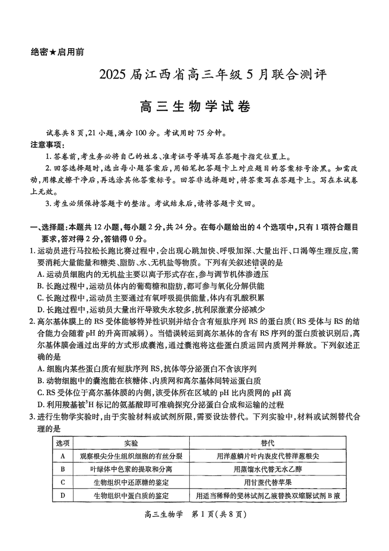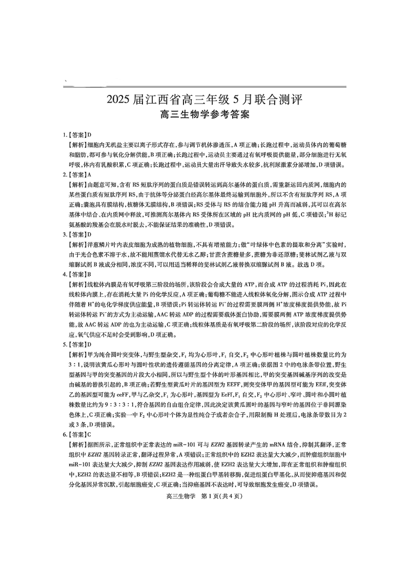 江西稳派上进联考2025届高三5月联合测评生物试题及答案
