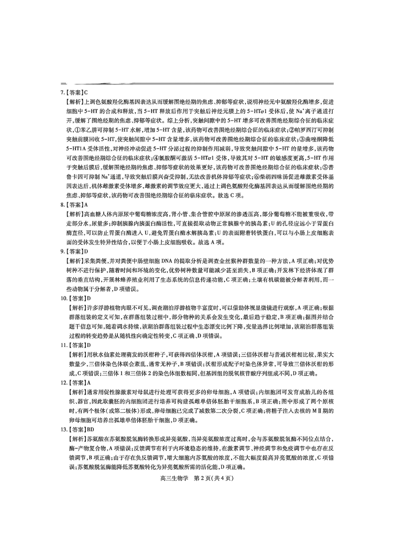 生物试题及答案解析