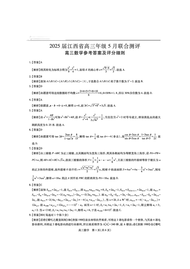 江西稳派上进联考2025届高三5月联合测评数学考试已于近日开考,为方便考生考后及时查看考试情况,查漏补缺、弥补不足,本文整理了试题答案解析相关信息!