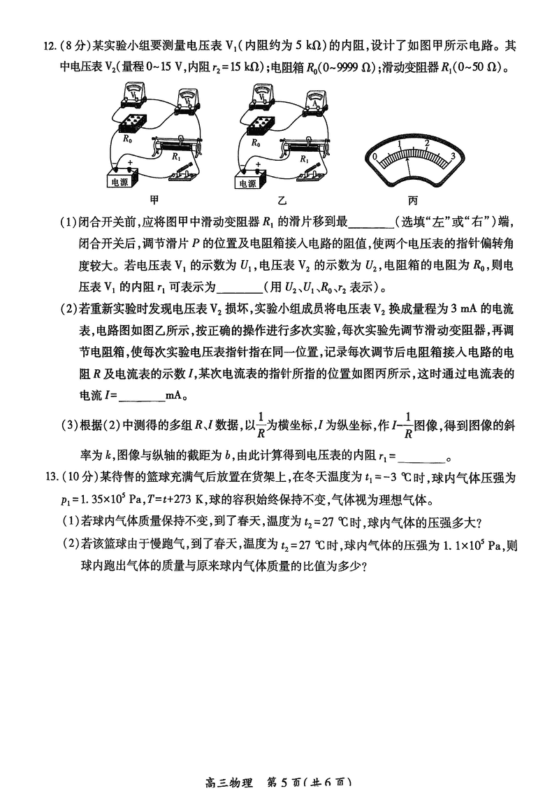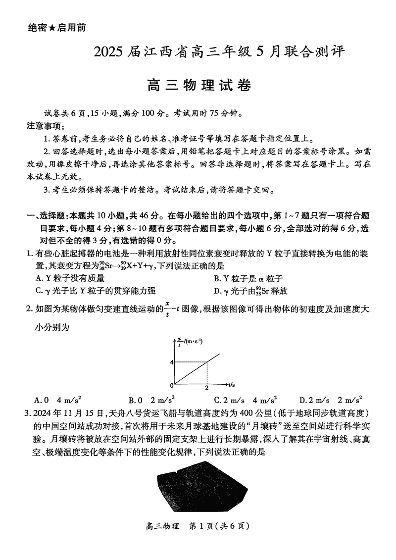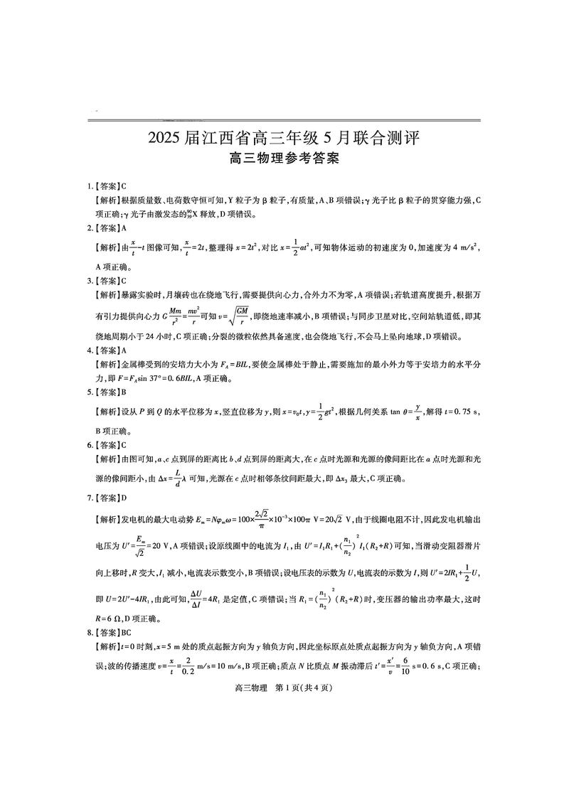 江西稳派上进联考2025届高三5月联合测评物理试题及答案