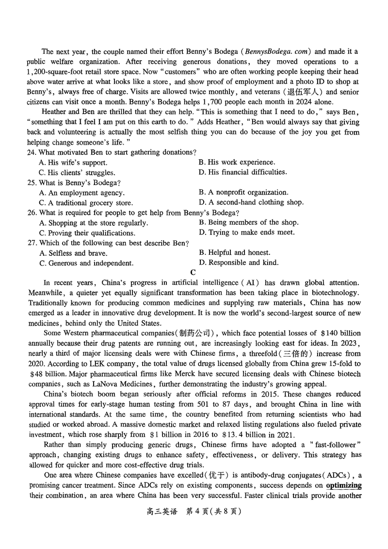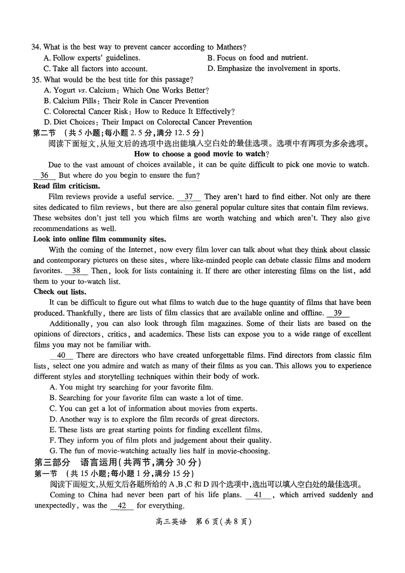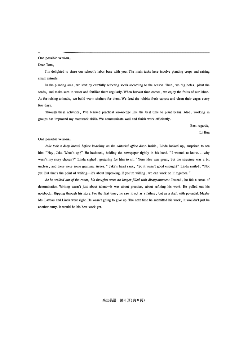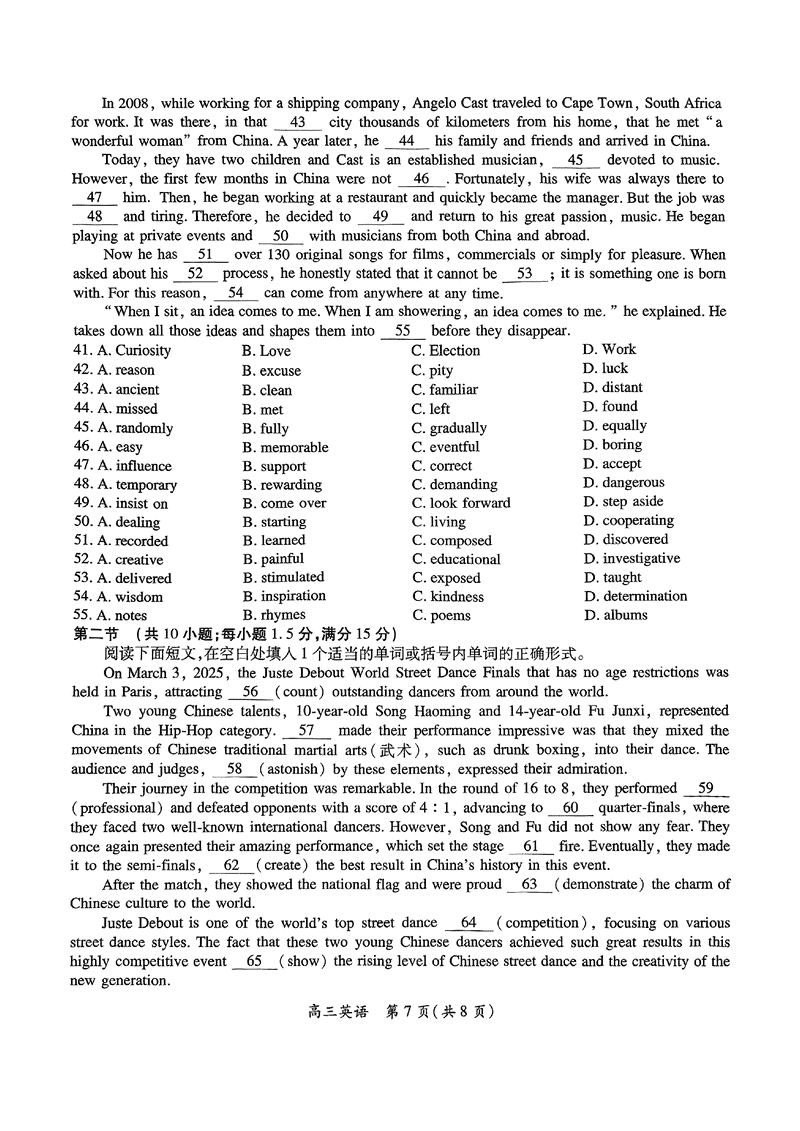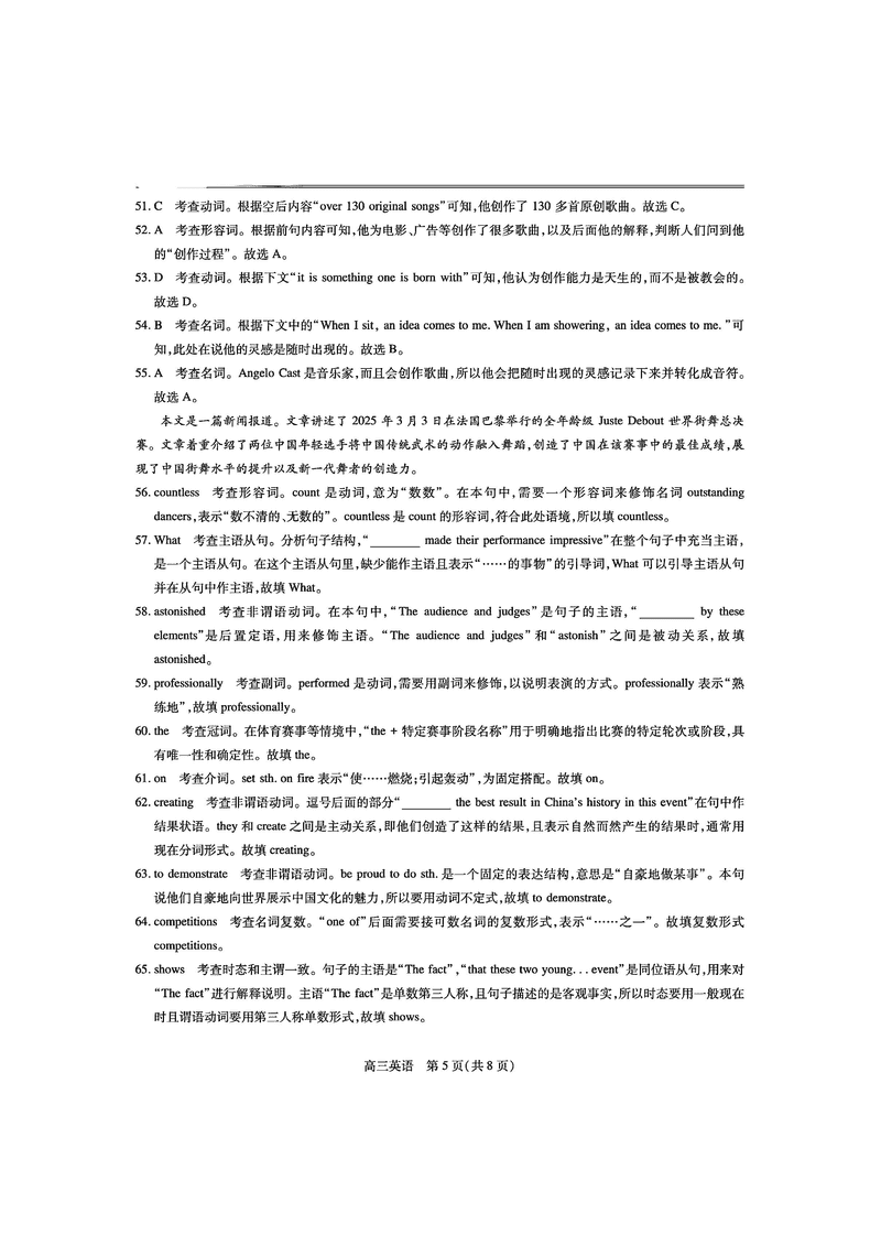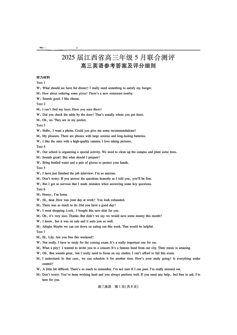 江西稳派上进联考2025届高三5月联合测评英语试题及答案