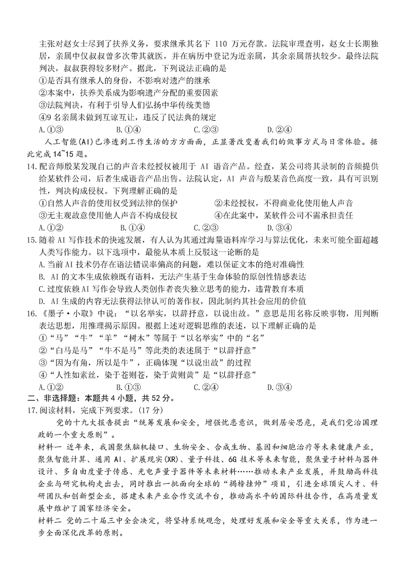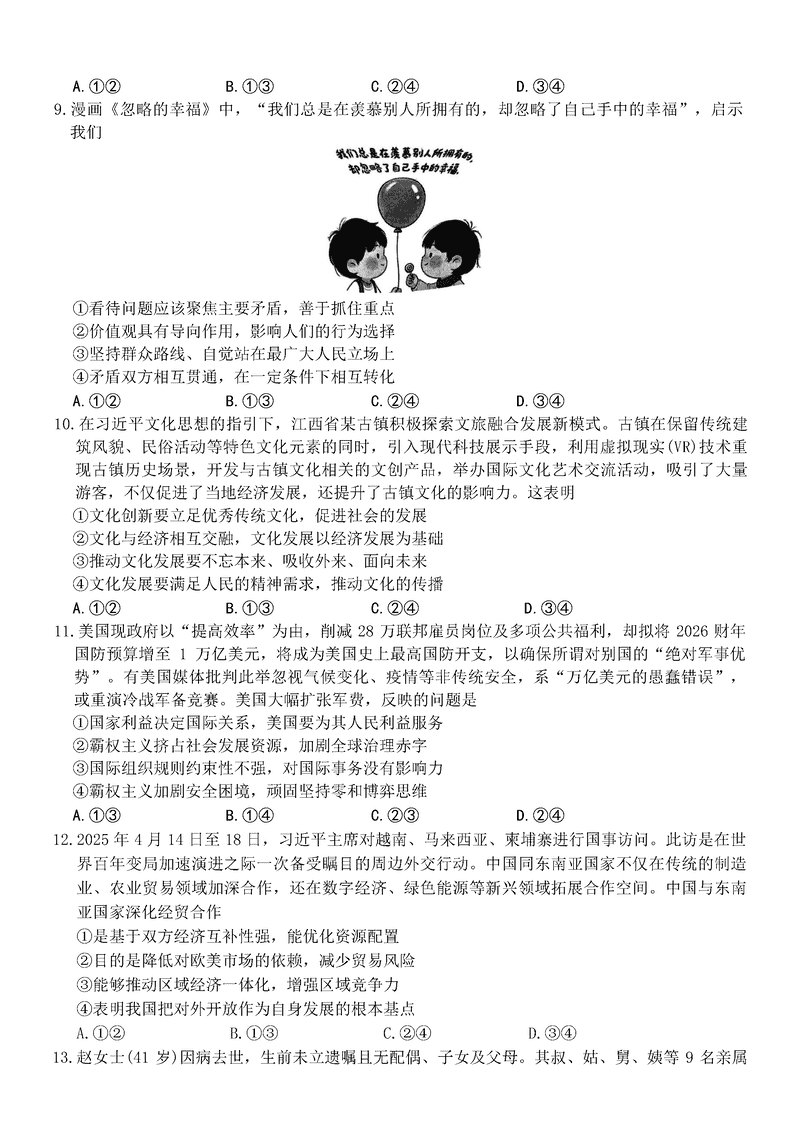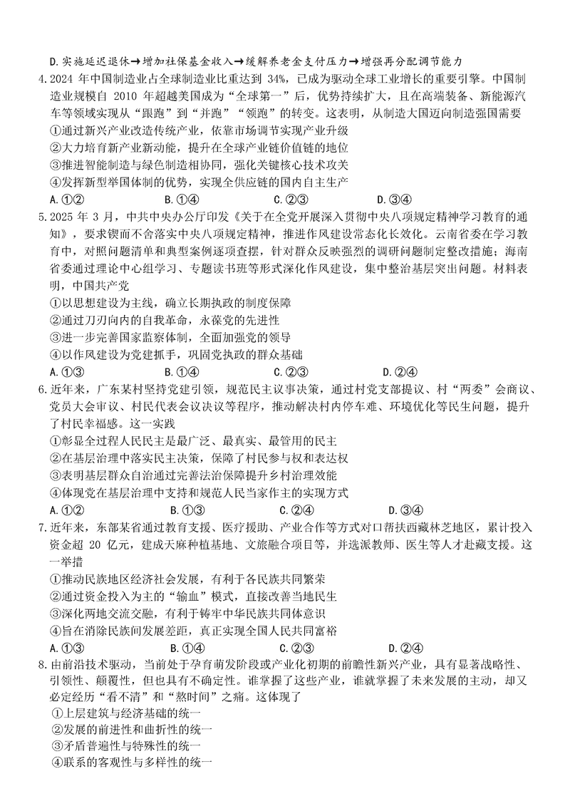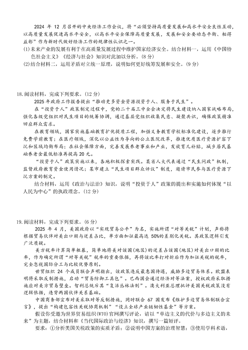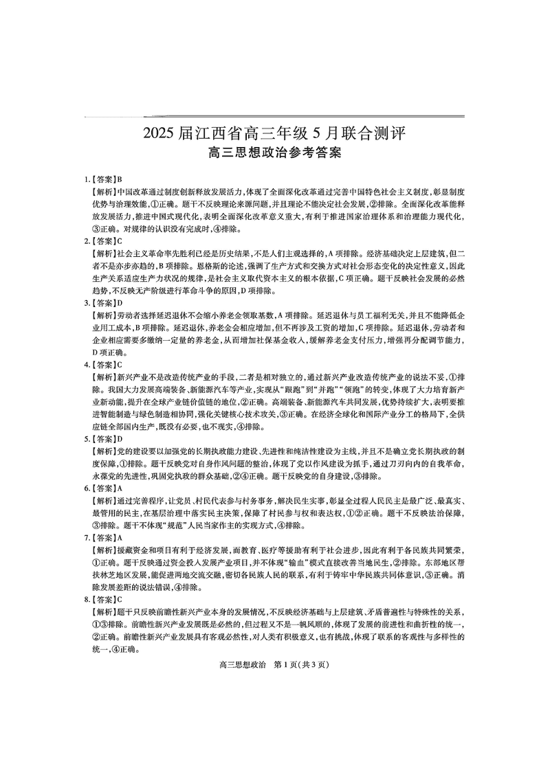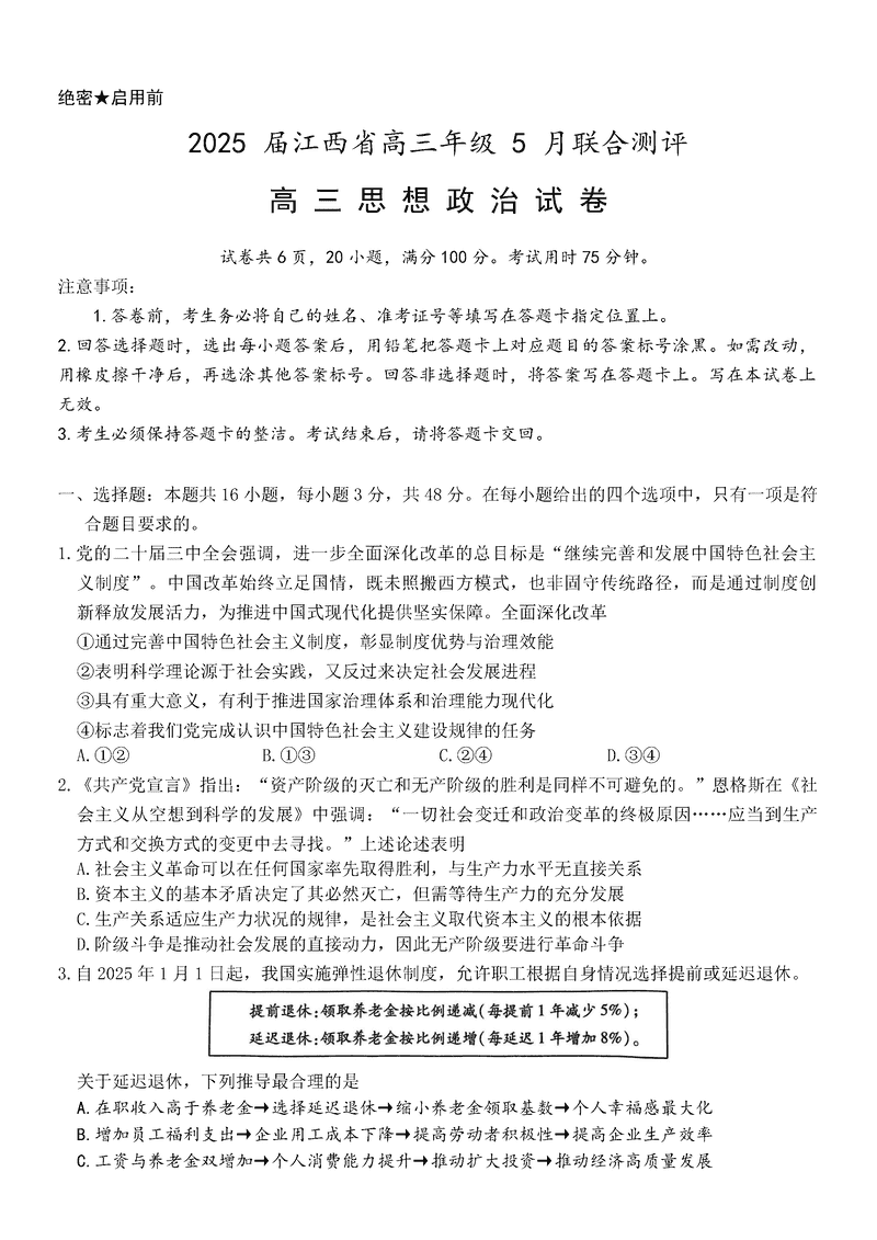 江西稳派上进联考2025届高三5月联合测评政治试题及答案