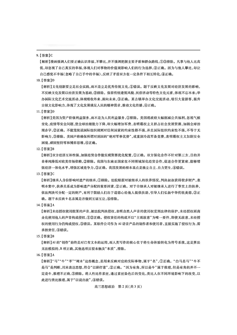 政治试题及答案解析