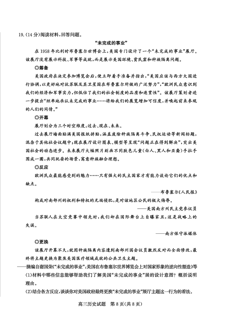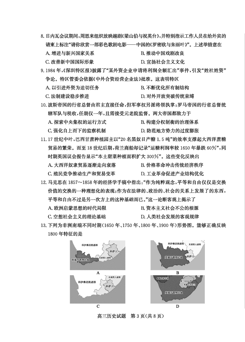 烟台、德州二模2025届高三高考适应性测试历史试题及答案