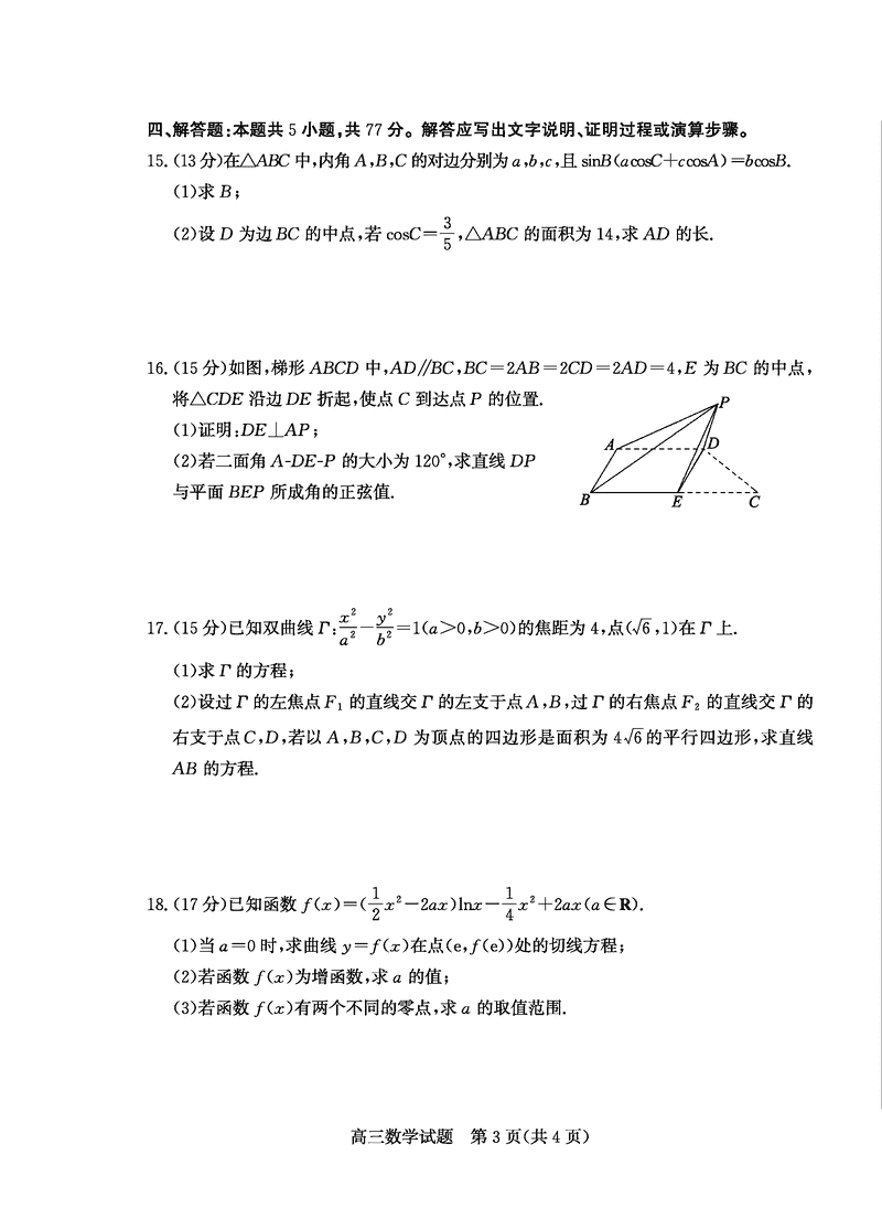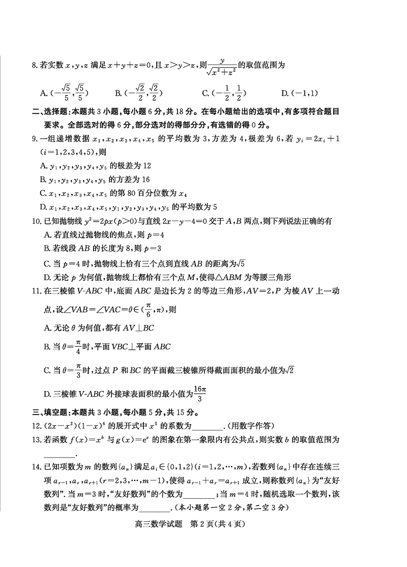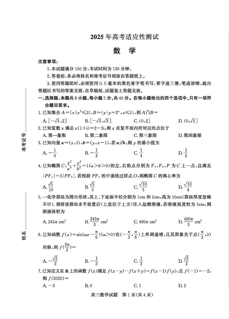 烟台、德州二模2025届高三高考适应性测试数学试题及答案