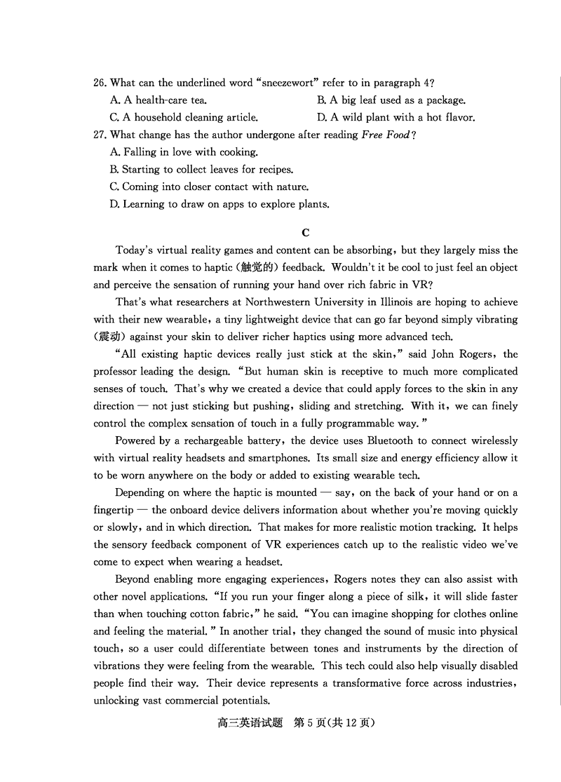 烟台、德州二模2025届高三高考适应性测试英语试题及答案