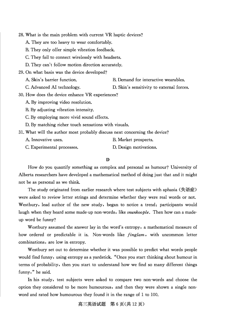 mksports - >山东高考 >山东高考试题 >山东英语试题 >