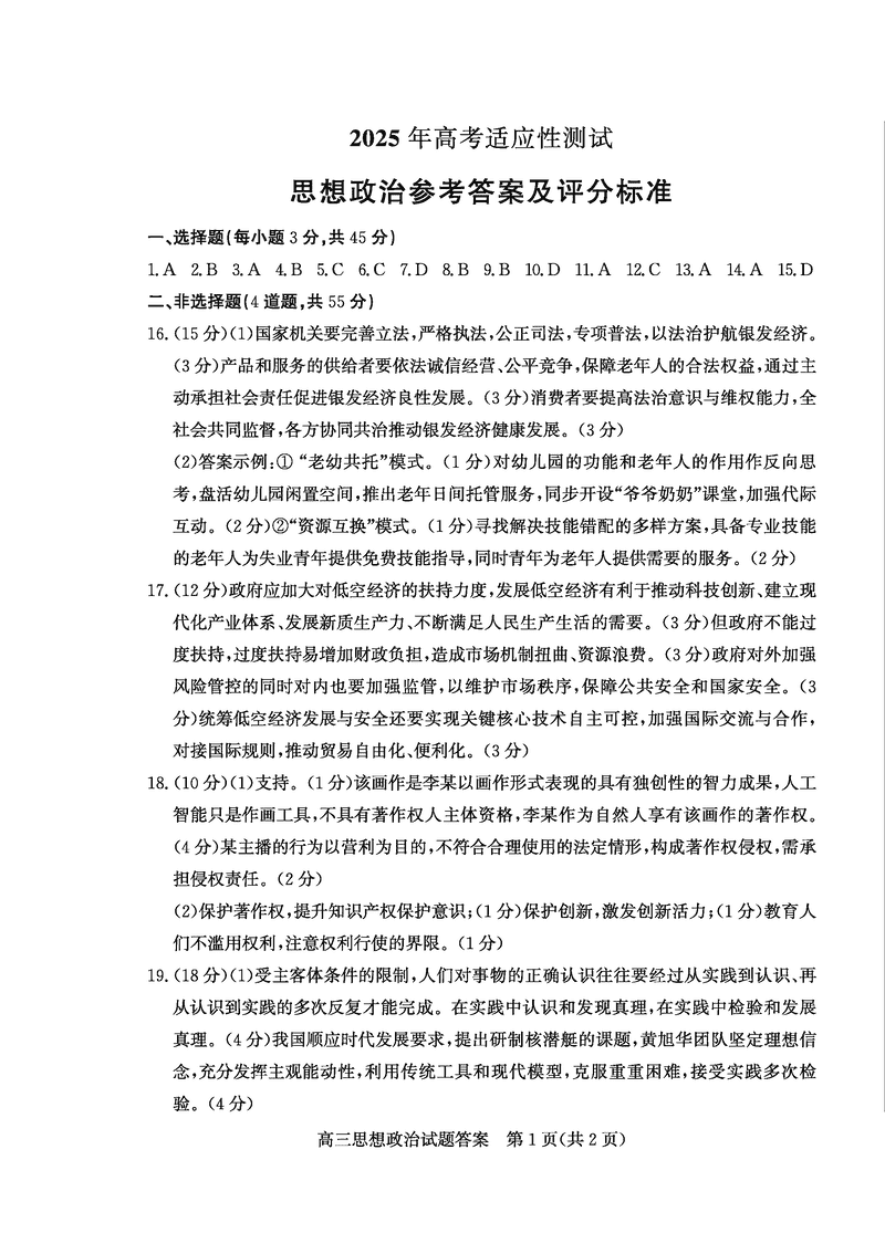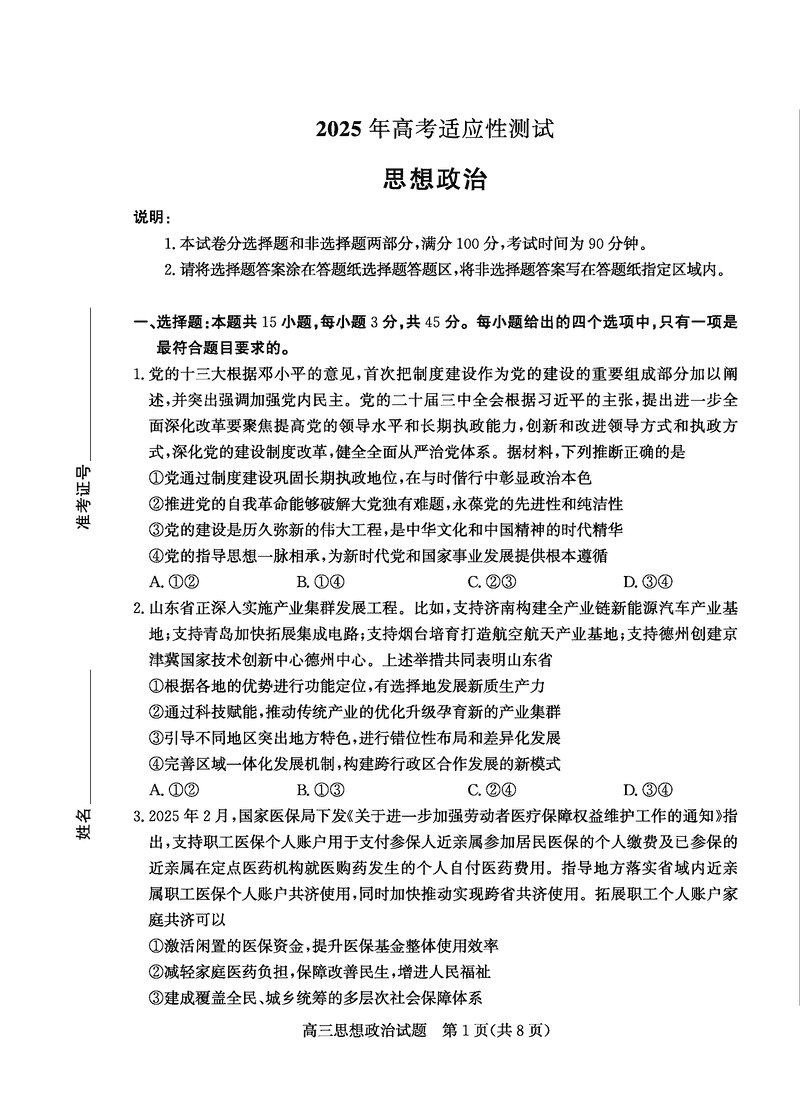 烟台、德州二模2025届高三高考适应性测试政治考试已于近日开考,为方便考生考后及时查看考试情况,查漏补缺、弥补不足,本文整理了试题答案解析相关信息!