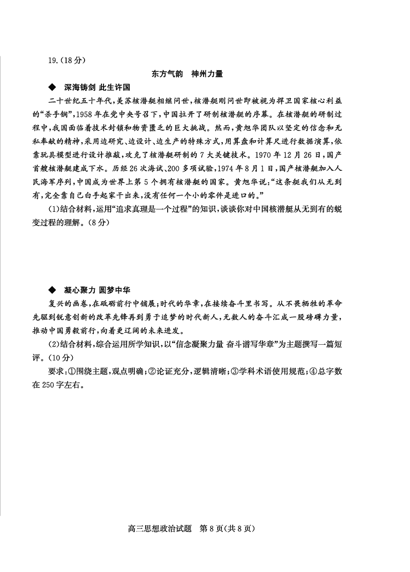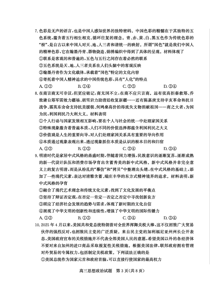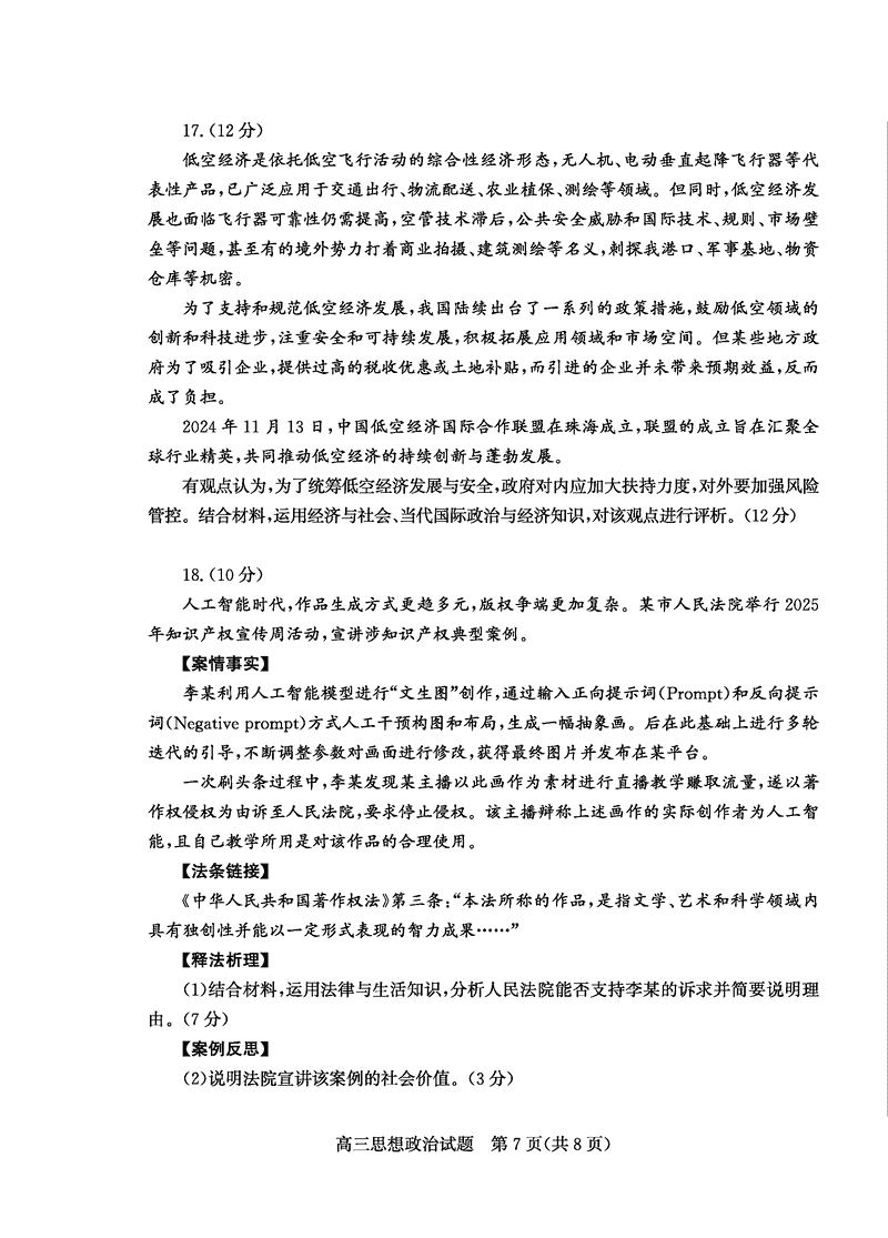 烟台、德州二模2025届高三高考适应性测试政治试题及答案