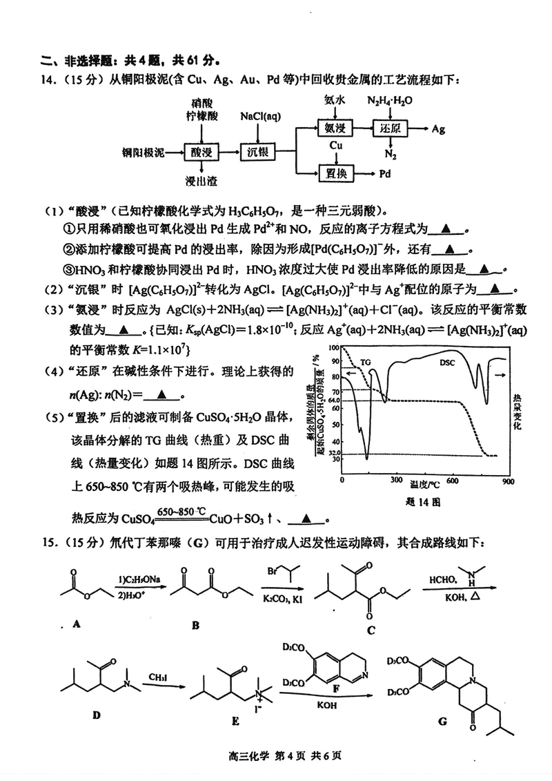 南京市2025届高三第二次模考化学考试已于近日开考,为方便考生考后及时查看考试情况,查漏补缺、弥补不足,本文整理了试题答案解析相关信息!