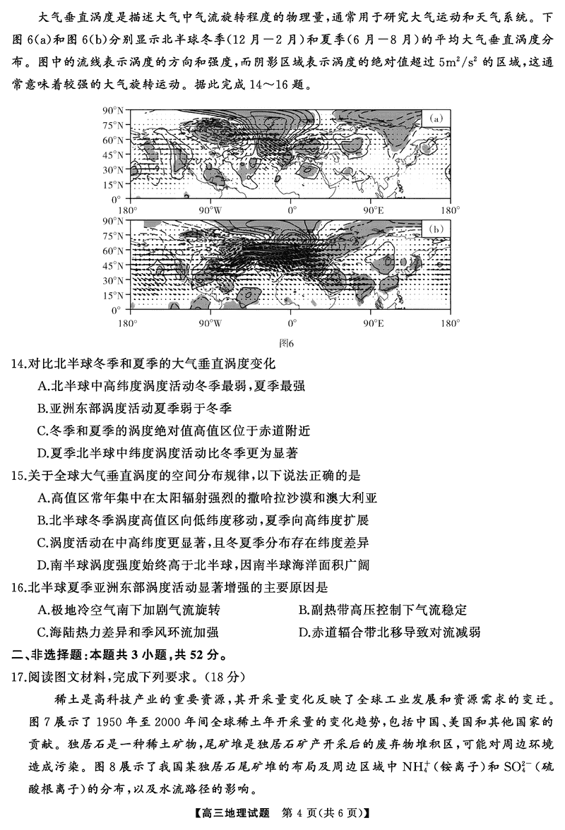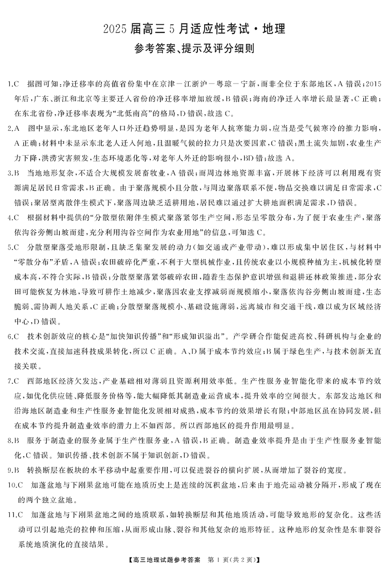 湖南天壹名校联盟2025届高三5月适应性考地理试题及答案