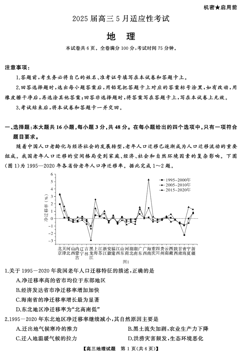 湖南省天壹名校联盟2025届高三5月适应性考地理考试已于近日开考,为方便考生考后及时查看考试情况,查漏补缺、弥补不足,本文整理了试题答案解析相关信息!