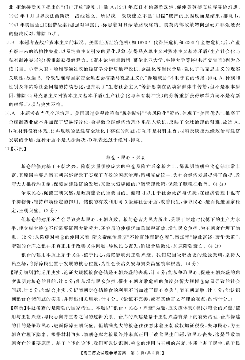 湖南天壹名校联盟2025届高三5月适应性考历史试题及答案